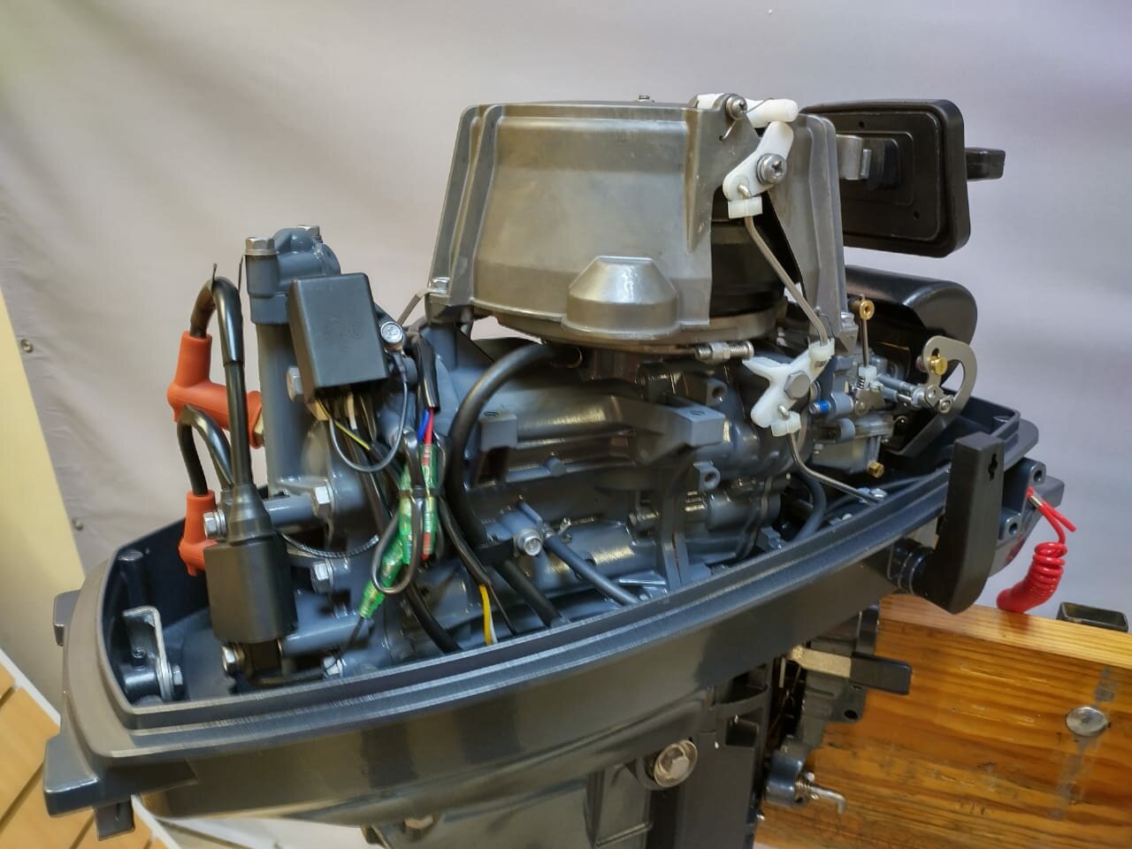 | Особенности | аварийный выключатель двигателя, наклон румпеля, передвижение по мелководью |