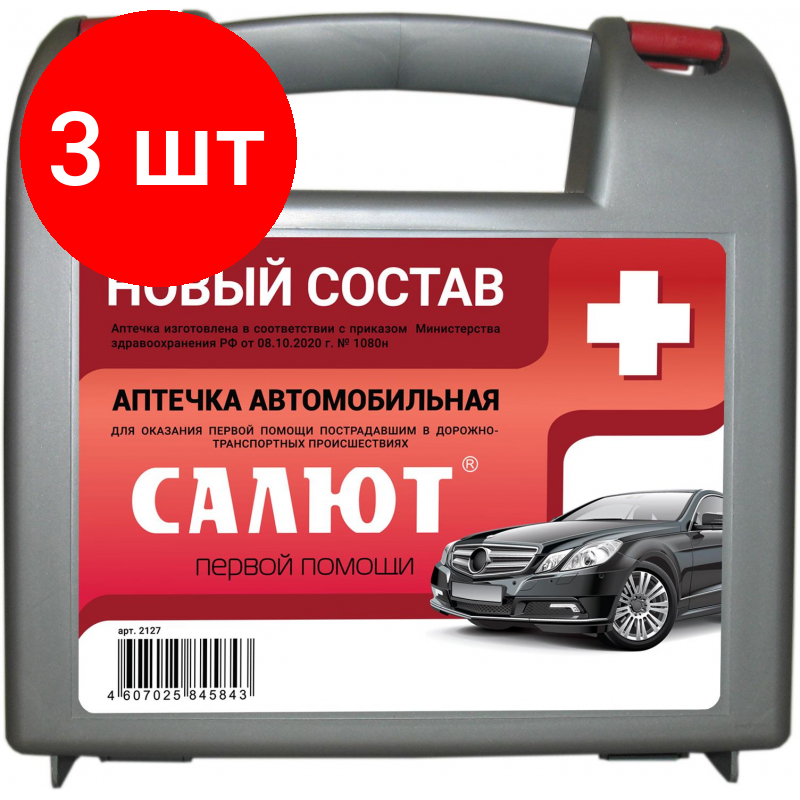 Купить Комплект 3 штук, Аптечка автомобильная салют полист(нов состав приказ№1080н от08.10.20)2127