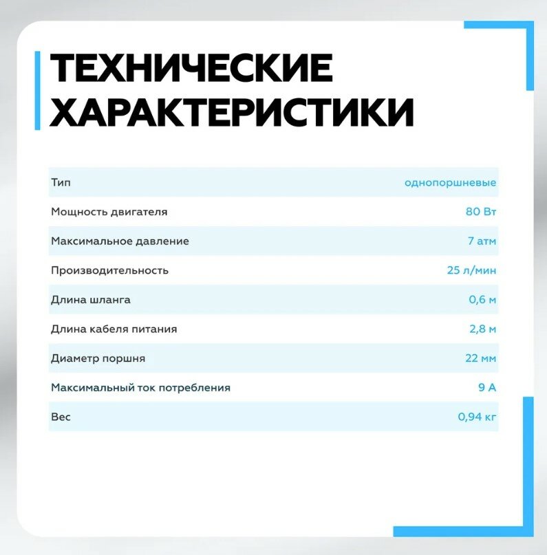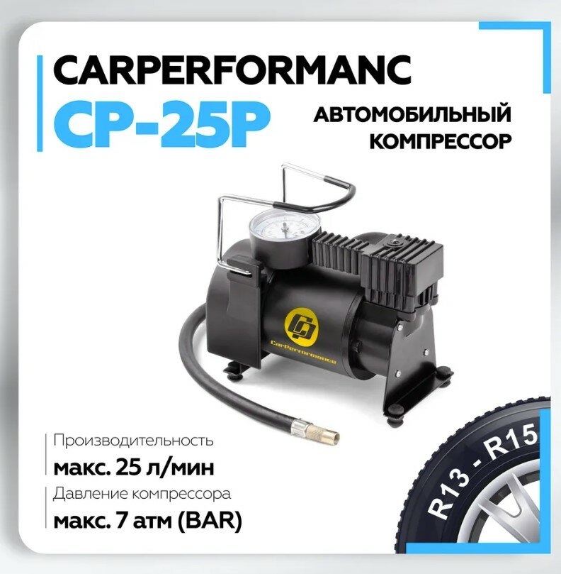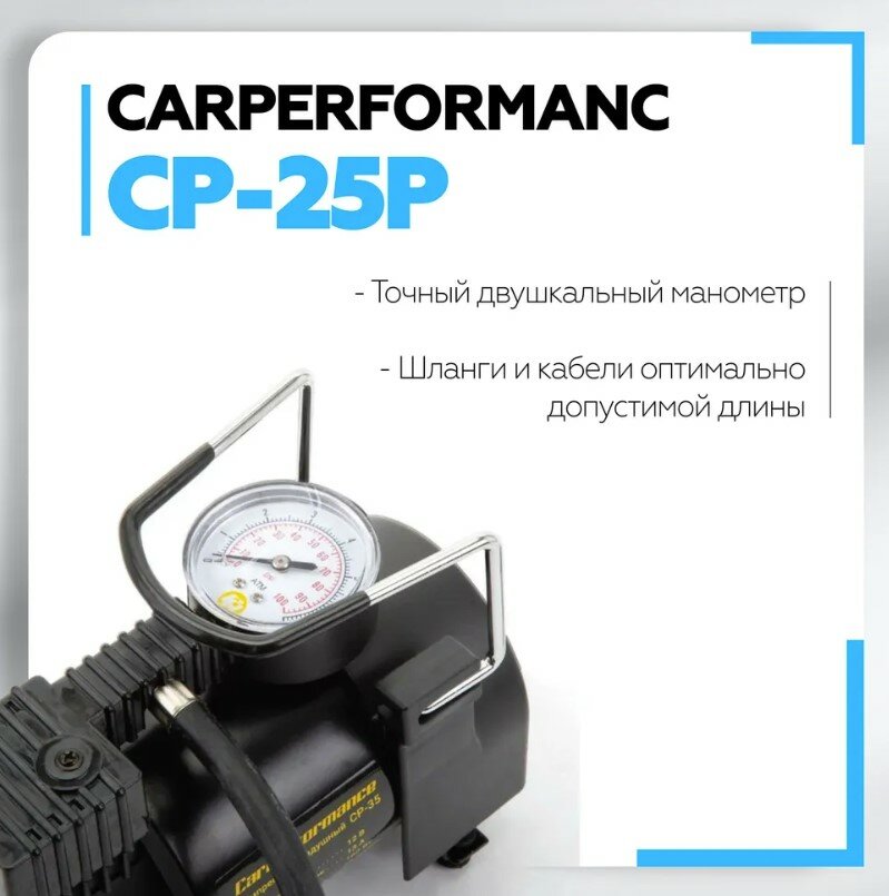 Компрессор воздушный CarPerformance, 25 л./мин., 12V/9A, 80W, 7 Атм интересное: