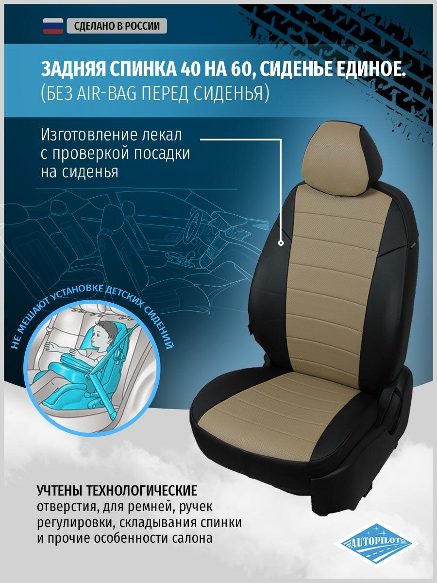 Купить Чехлы на сиденья "АВТОПИЛОТ" из экокожи для Renault Logan II 40/60/Sandero II (без подушек безопасности) c 14г. Черный, Темно-бежевый. re-lg-l2-chetb-e