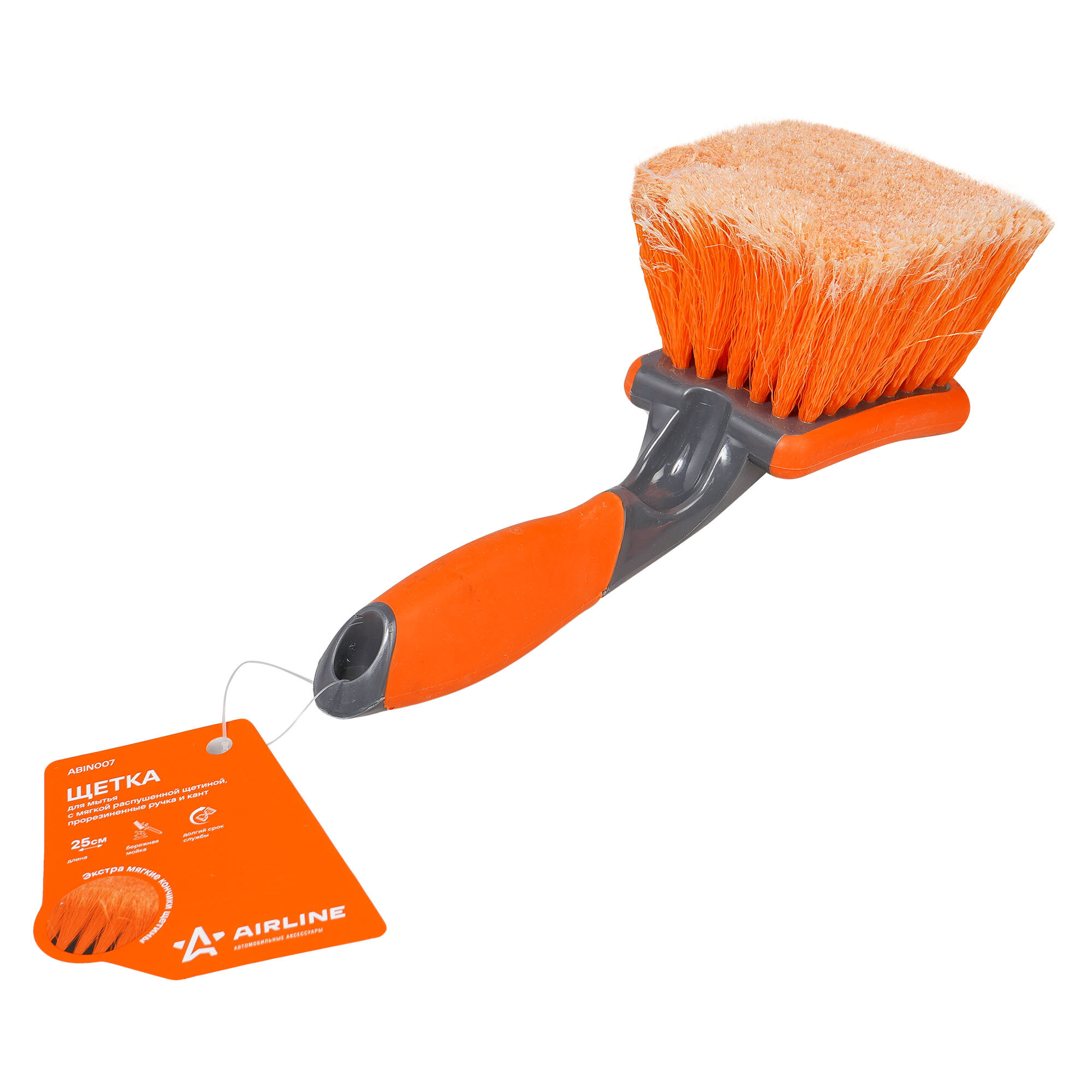 Щетка Для Мытья С Мягкой Распушенной Щетиной Прорезиненные Ручка И Кант (25 См) (Abin007) AIRLINE арт. abin007