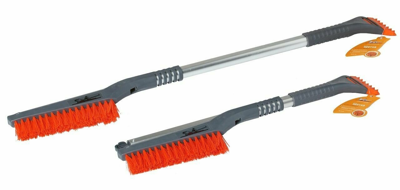Щетка-сметка для снега со скребком Denzel телескоп, поворотная голова, водосгон, 900-1200 мм 55308