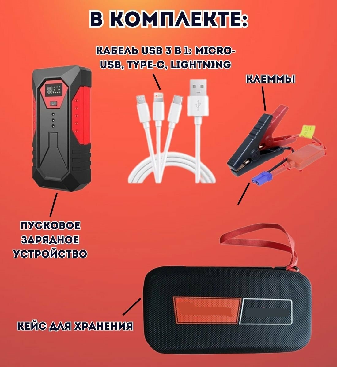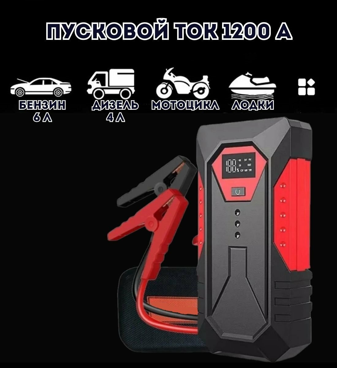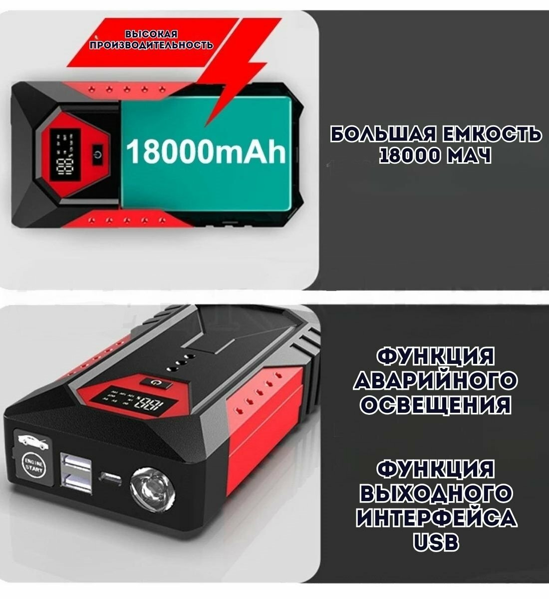 Портативное пусковое устройство для автомобиля ANYSMART 18000 мАч, 1200A интересное: