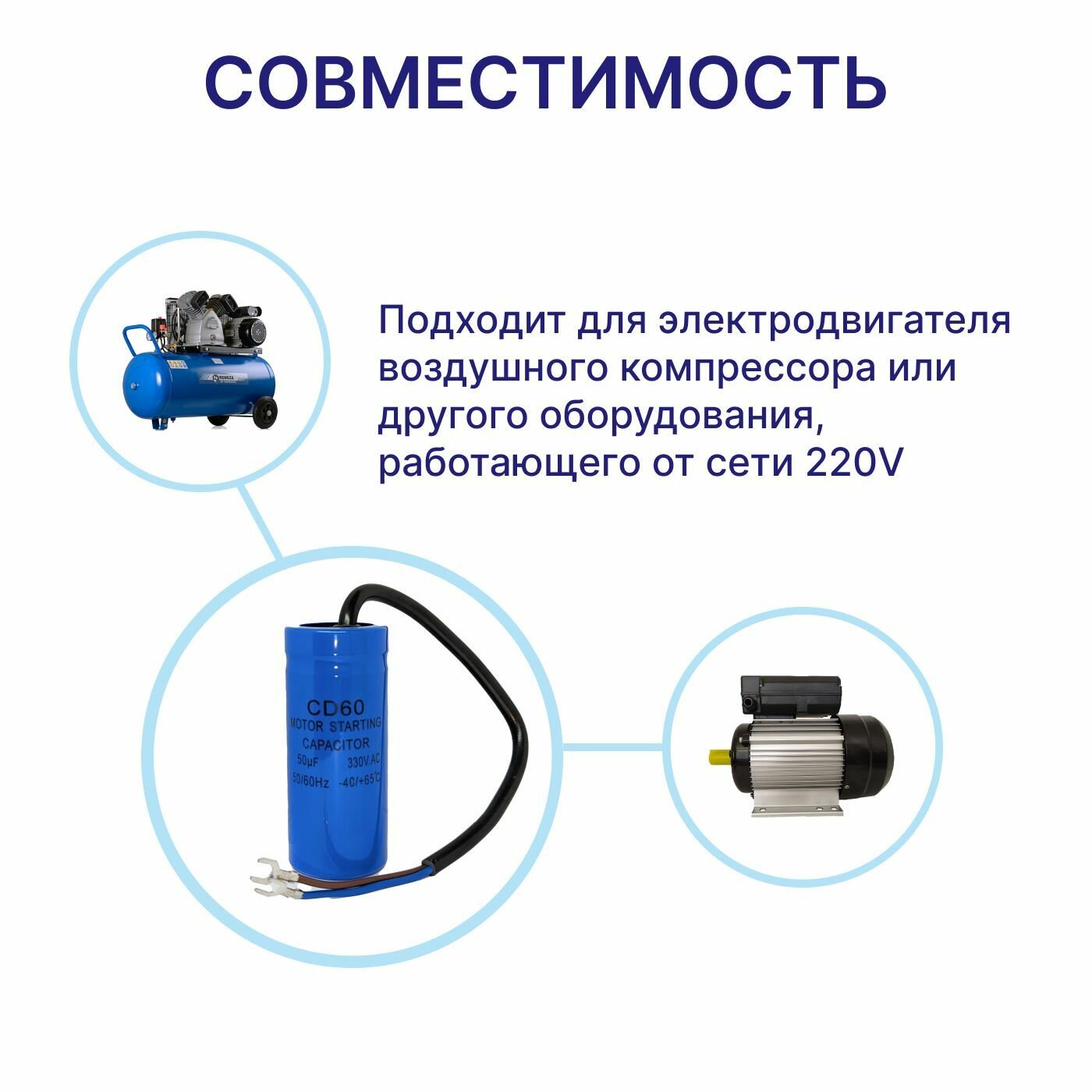 Конденсатор стартовый (пусковой) CD-60 50uF/330V для электродвигателя интересное: