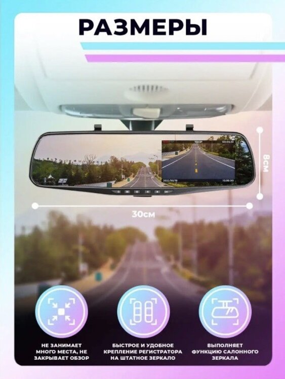 Умный автомобильный видеорегистратор зеркало с 2 камерами CLEARLY /Широкий угол обзора/Яркое изображение интересное: