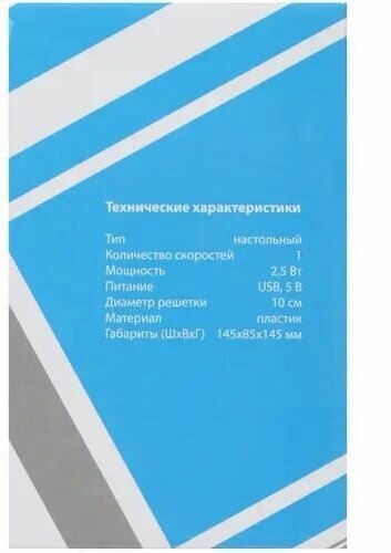 Вентилятор настольный , USB, белый, металлический, с лопастями 12 см, мощность 2,5 Вт