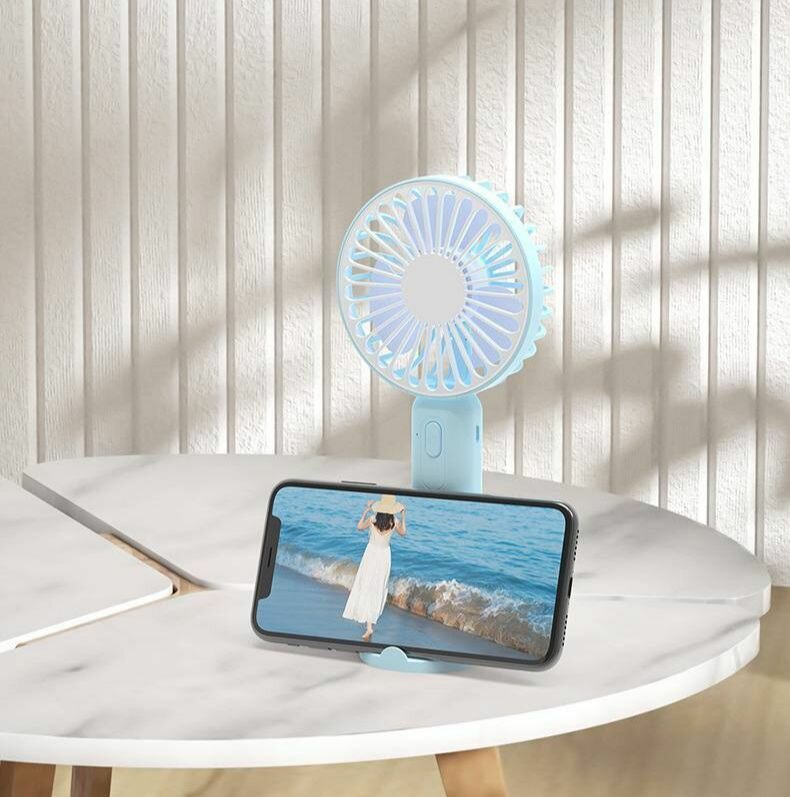 Мини вентилятор в форме наручных часов LOF-09, 3 скорости, подсветка, голубой