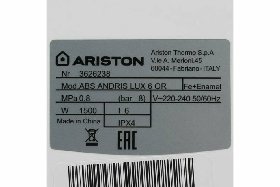 ARISTON ABS ANDRIS LUX 6 OR, Водонагреватель накопительный, электрический (над раковиной)