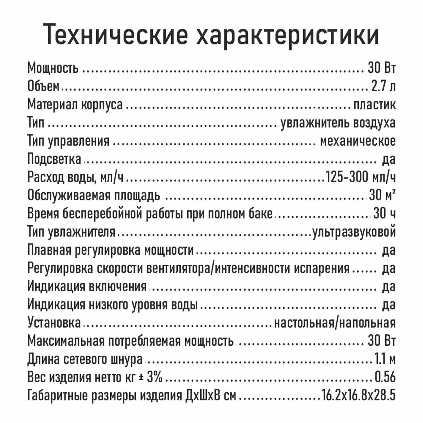 | Потребляемая мощность | 30 Вт |