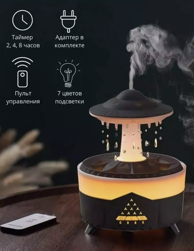 Увлажнитель гриб капля увлажнитель воздуха для дома аромадиффузор 3 в 1 черный Miralda_Shop интересное: