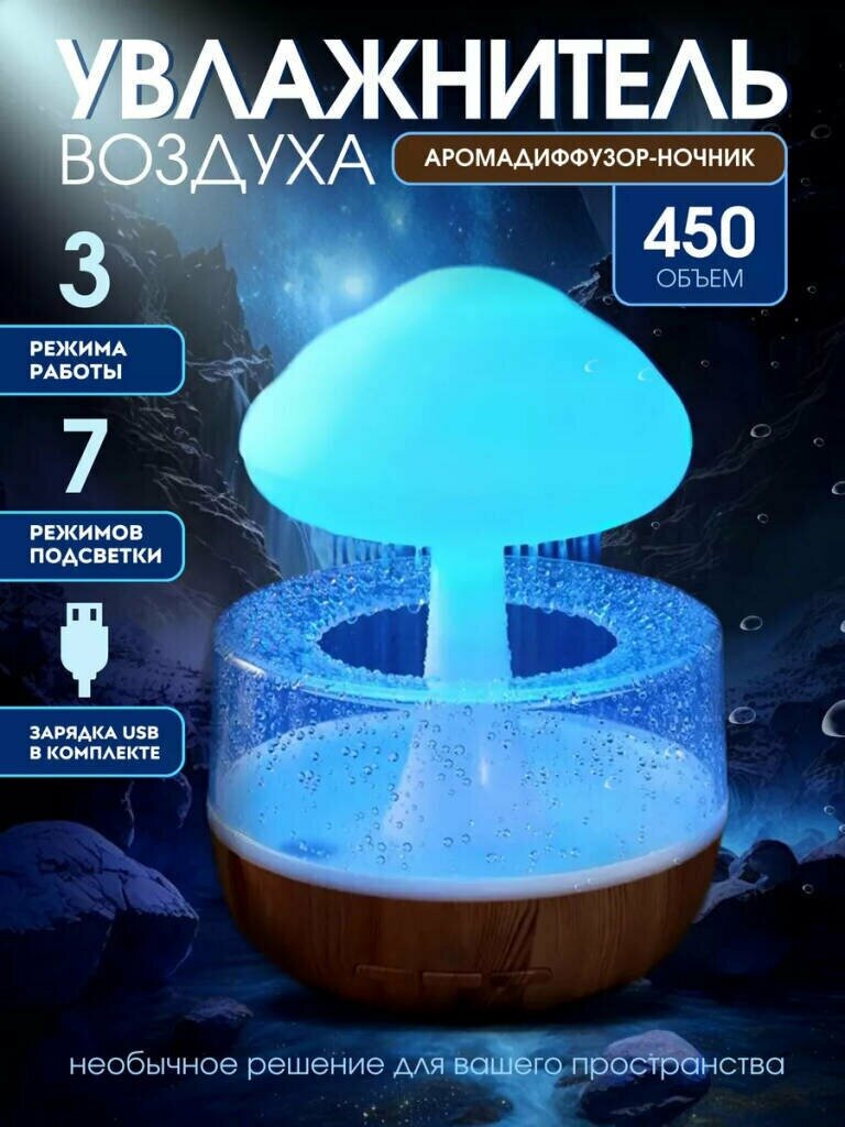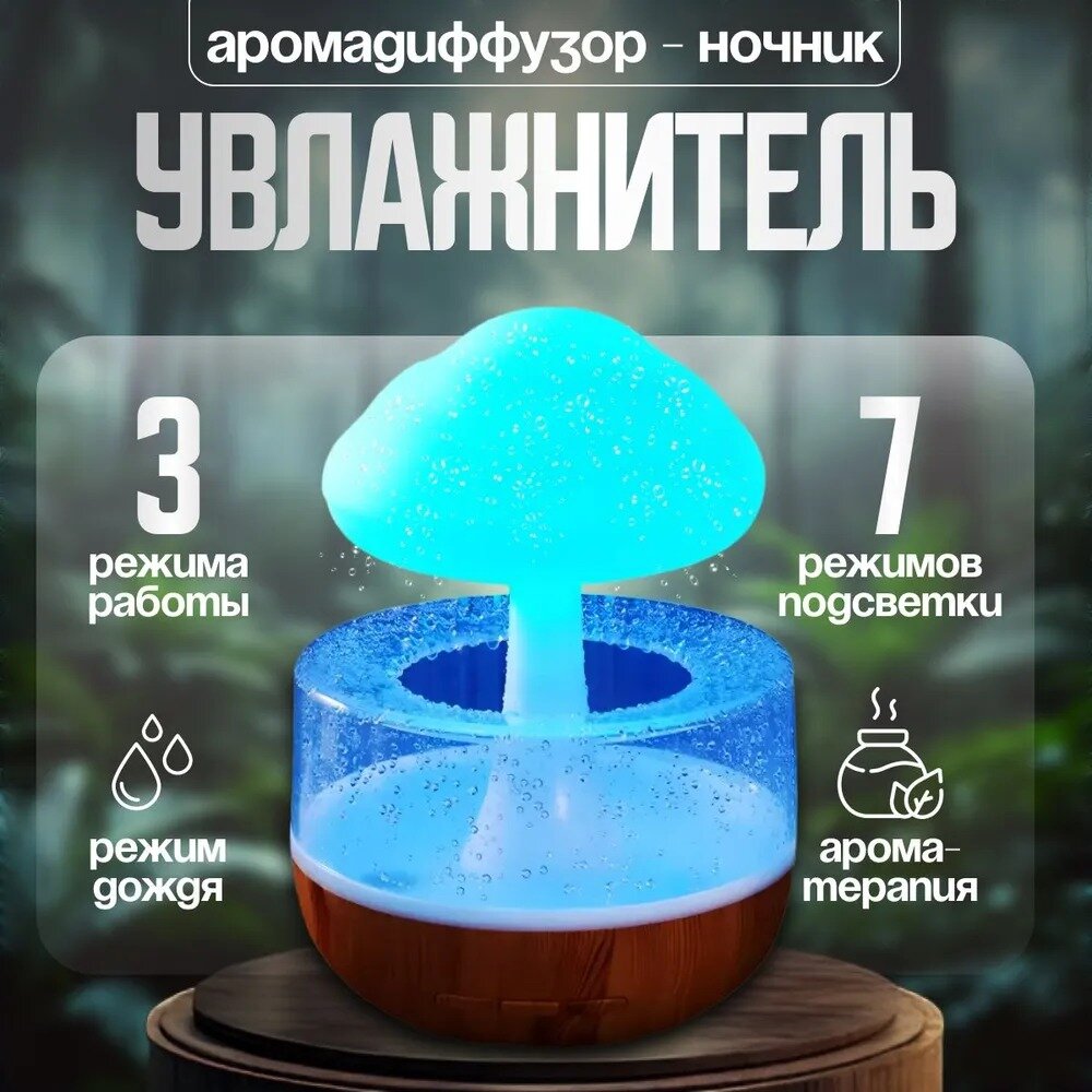 Капельный увлажнитель воздуха гриб с дождем. Облако с дождем и подсветкой. Аккумуляторы и 220 интересное: