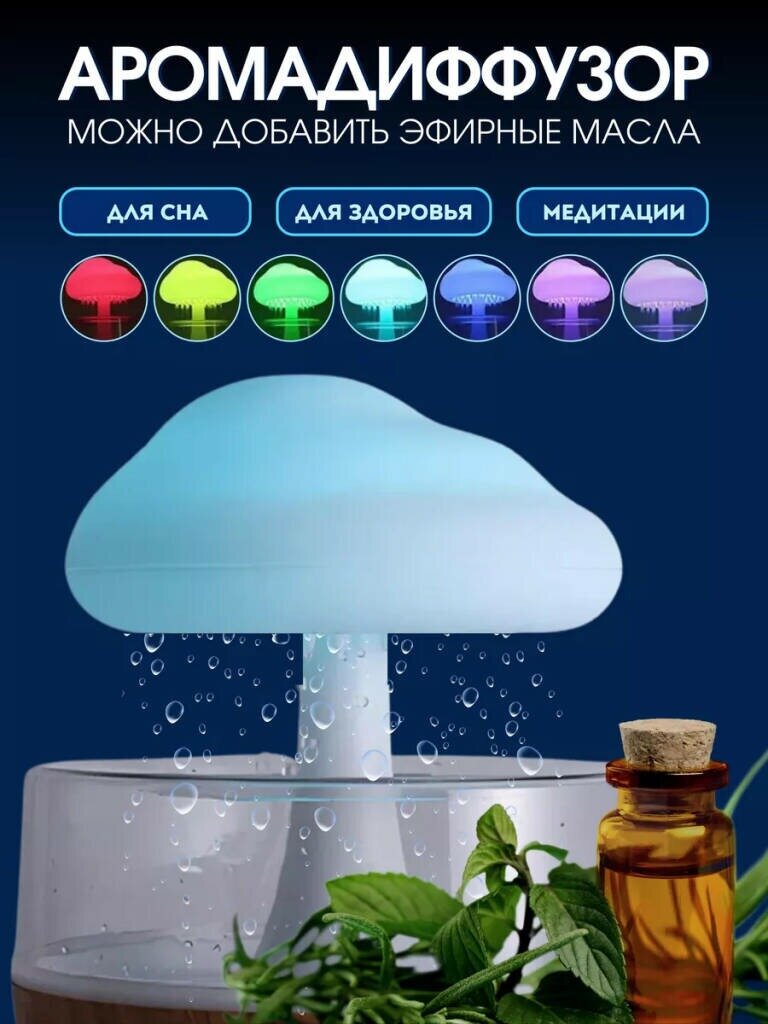 Купить Капельный увлажнитель воздуха гриб с дождем. Облако с дождем и подсветкой. Аккумуляторы и 220