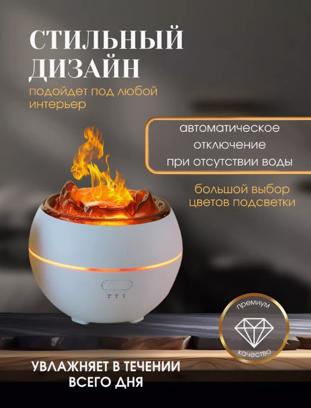 Увлажнитель воздуха вулкан/ Аромадиффузор с эффектом пламени/ увлажнитель воздуха белый Miralda_Shop интересное: