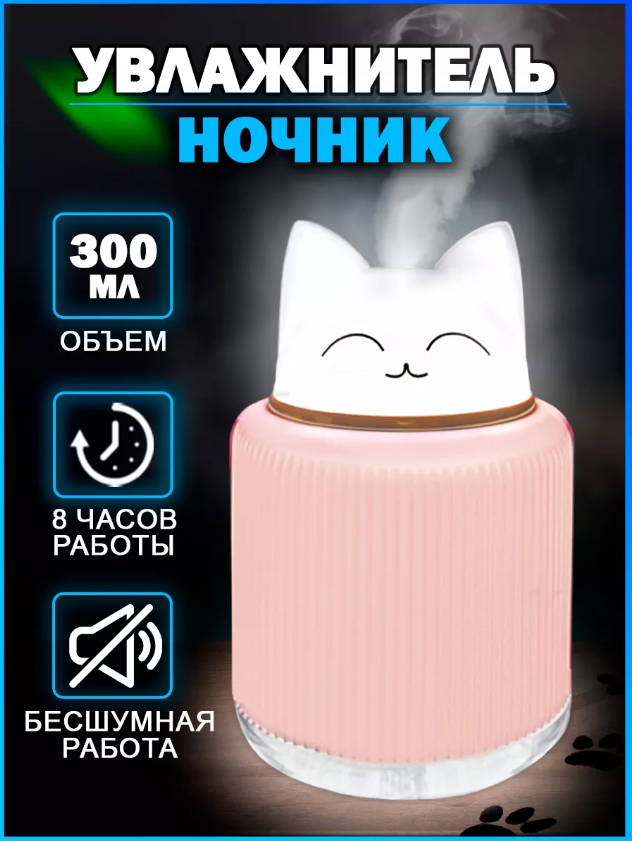 Увлажнитель воздуха ночник для дома, Котик розовый интересное: