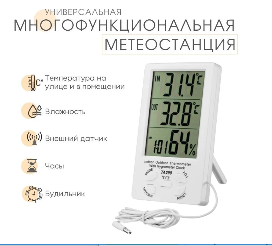 Ниже Вы можете прочитать отзывы на Термометр комнатный, уличный с выносным датчиком / Цифровой термогигрометр с измерением влажности и температуры , SimpleShop, ознакомится с подробными характеристиками, посмотреть интересные обзоры и фотографии на Термометр комнатный, уличный с выносным датчиком / Цифровой термогигрометр с измерением влажности и температуры , SimpleShop.