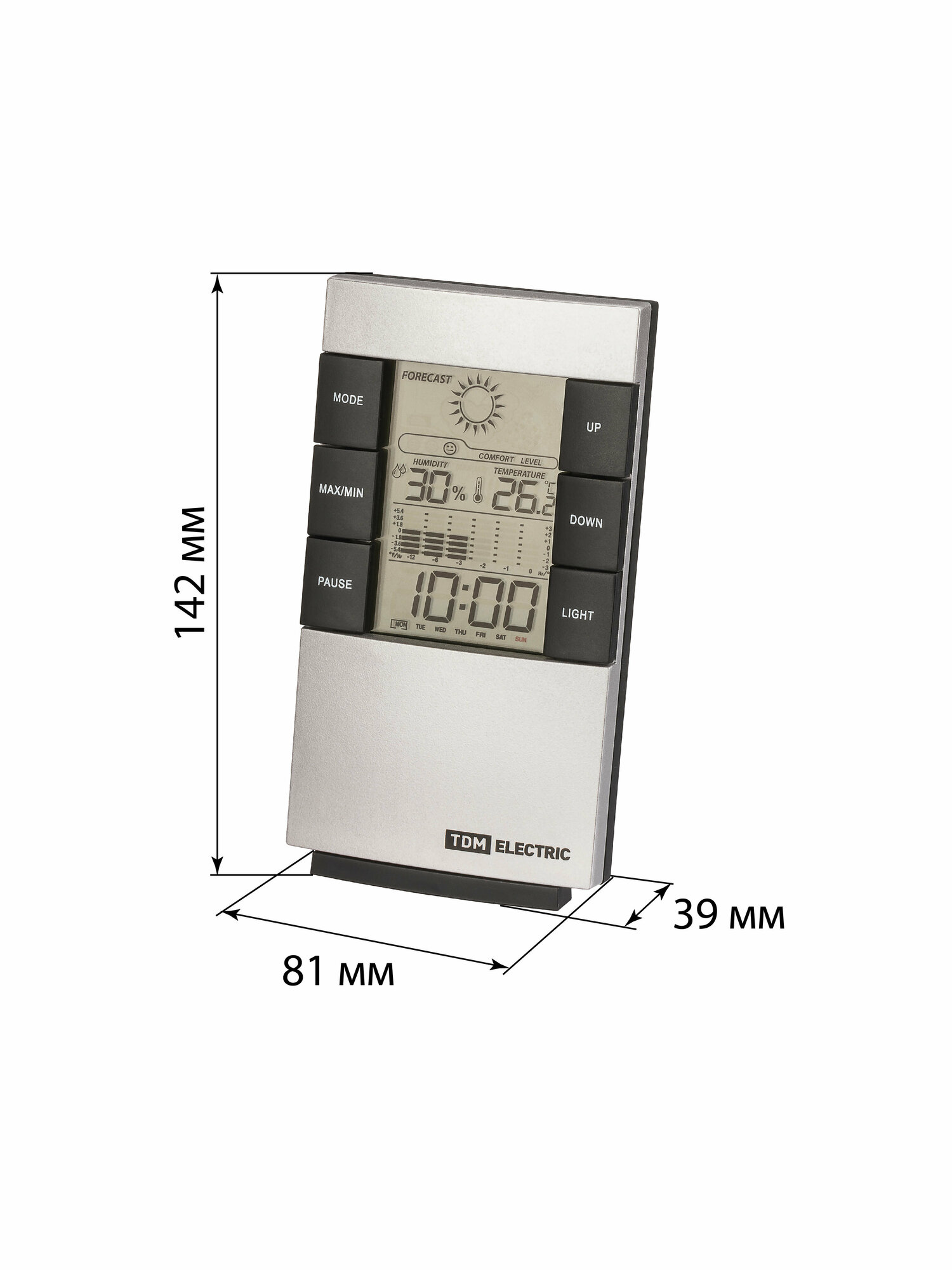 Метеостанция комнатная "Климат 1" вертикальная, термометр, гигрометр, будильник, серебро, TDM SQ4006-0001 (1 шт.)