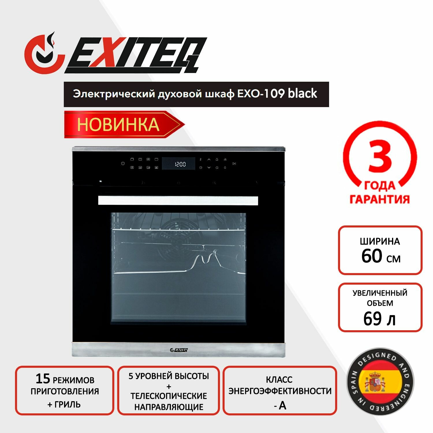 Встраиваемый электрический духовой шкаф Exiteq EXO-109 интересное: