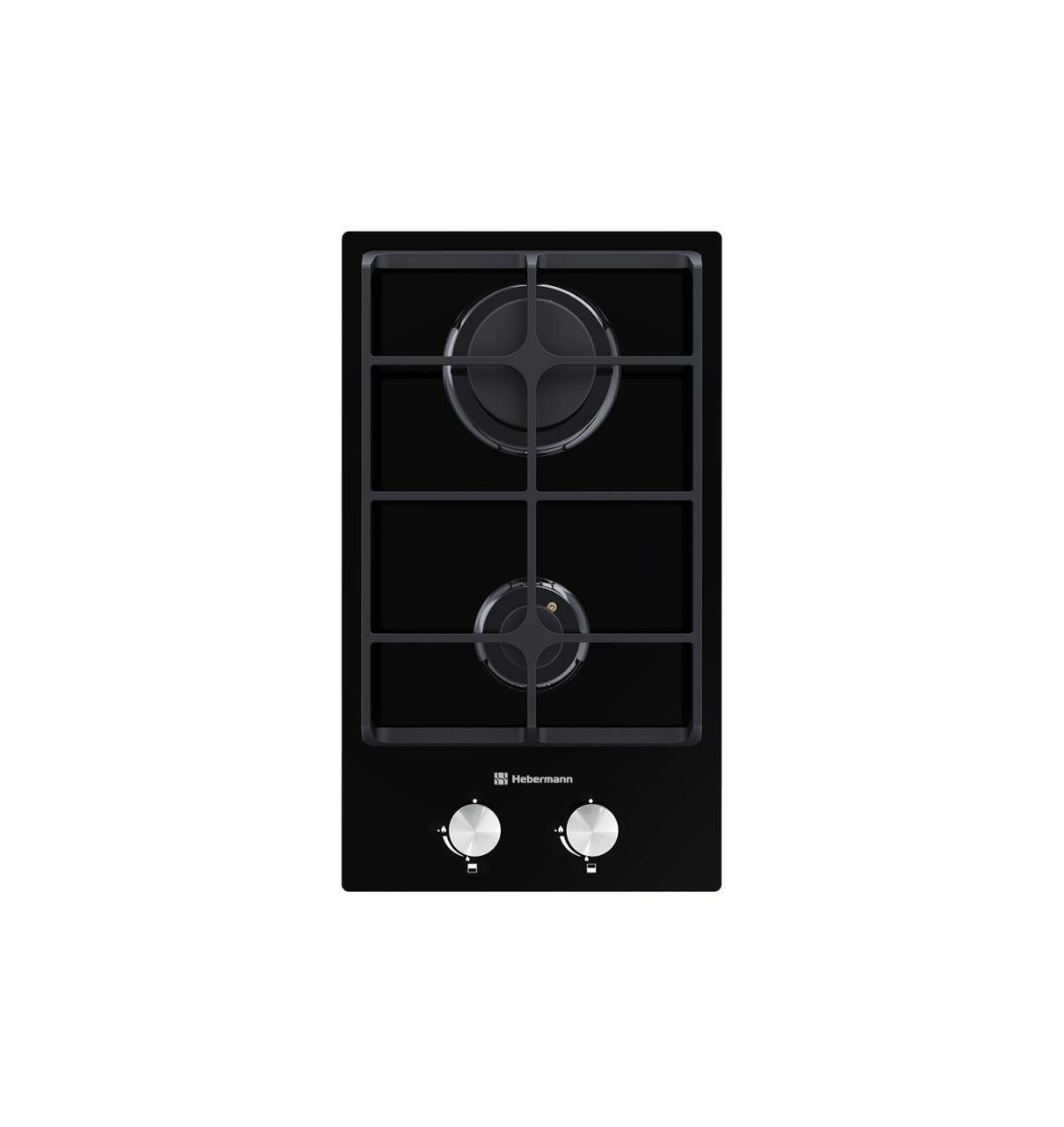 Купить Варочная панель газовая Hebermann HBGG 302.1 B, материал поверхности: закалённое стекло, материал решёток: чугун, термостойкие ручки Hitech, управление: Механическое, Электроподжиг, Газ-контроль