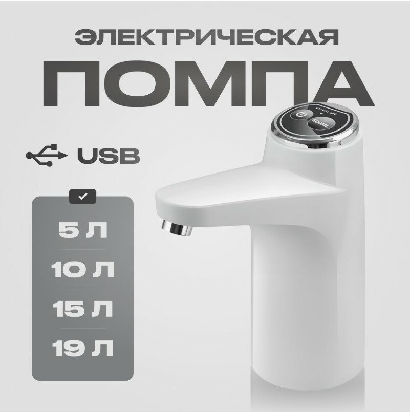 Электрическая помпа для воды , установка на бутылку, белая BM