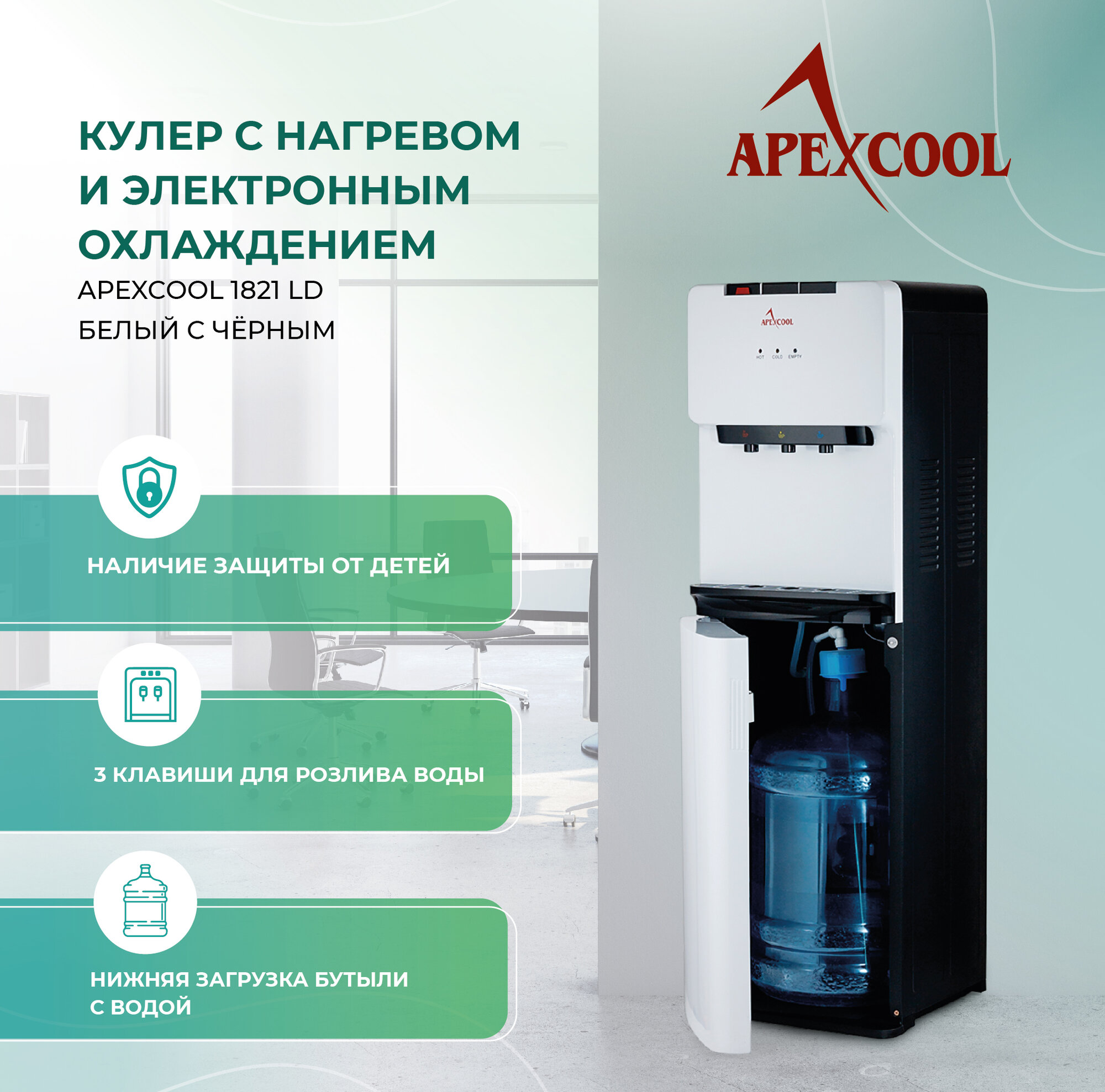 Кулер для воды с нижней загрузкой APEXCOOL 1821LDN Белый нагрев и охлаждение интересное:
