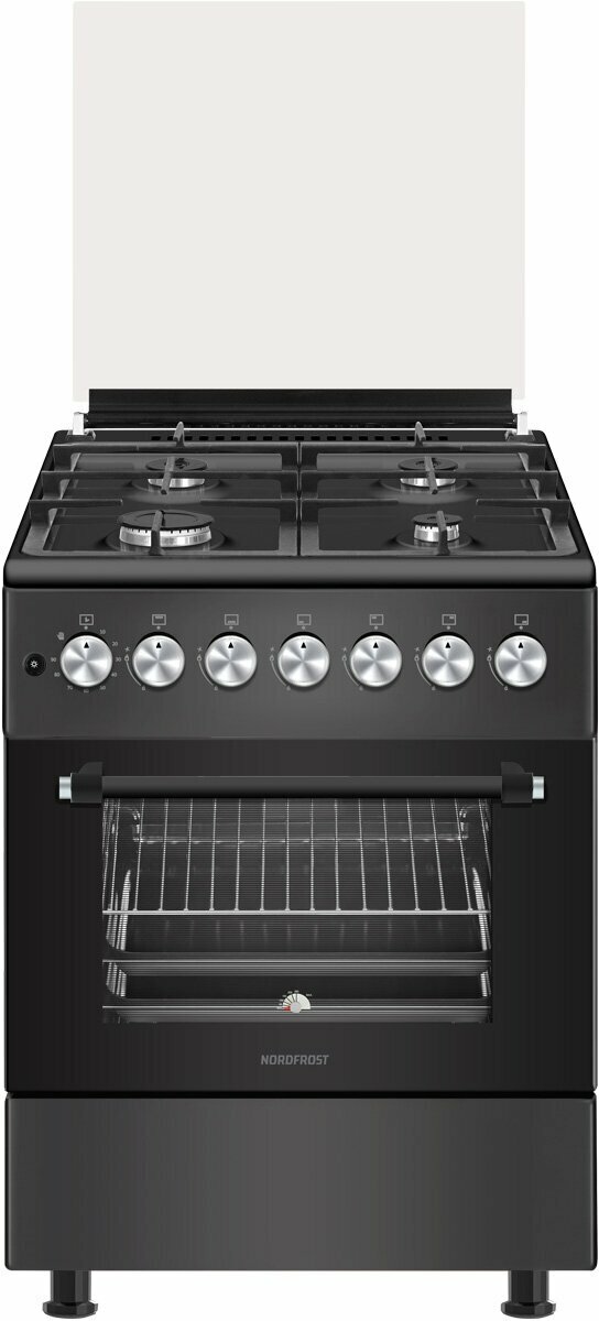 Купить Газовая плита NORDFROST GG 6064 Gd, 63 литров, авторозжиг, газ-контроль конфорок и духовки, темный графит
