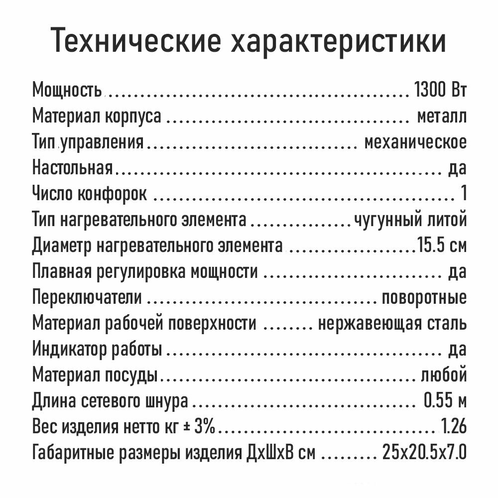 Электрическая настольная плитка чудесница ЭЛП-804, 1500 Вт, черный