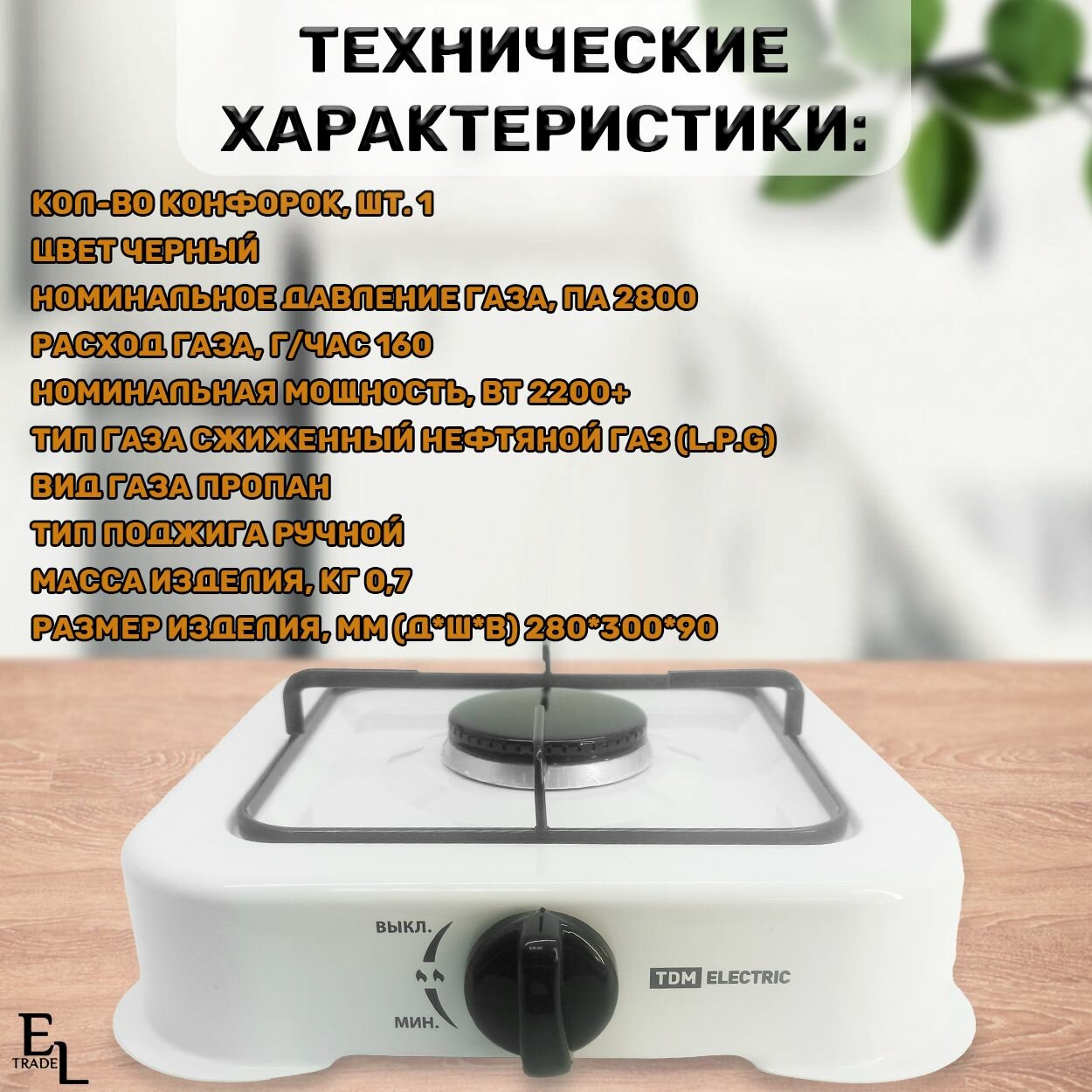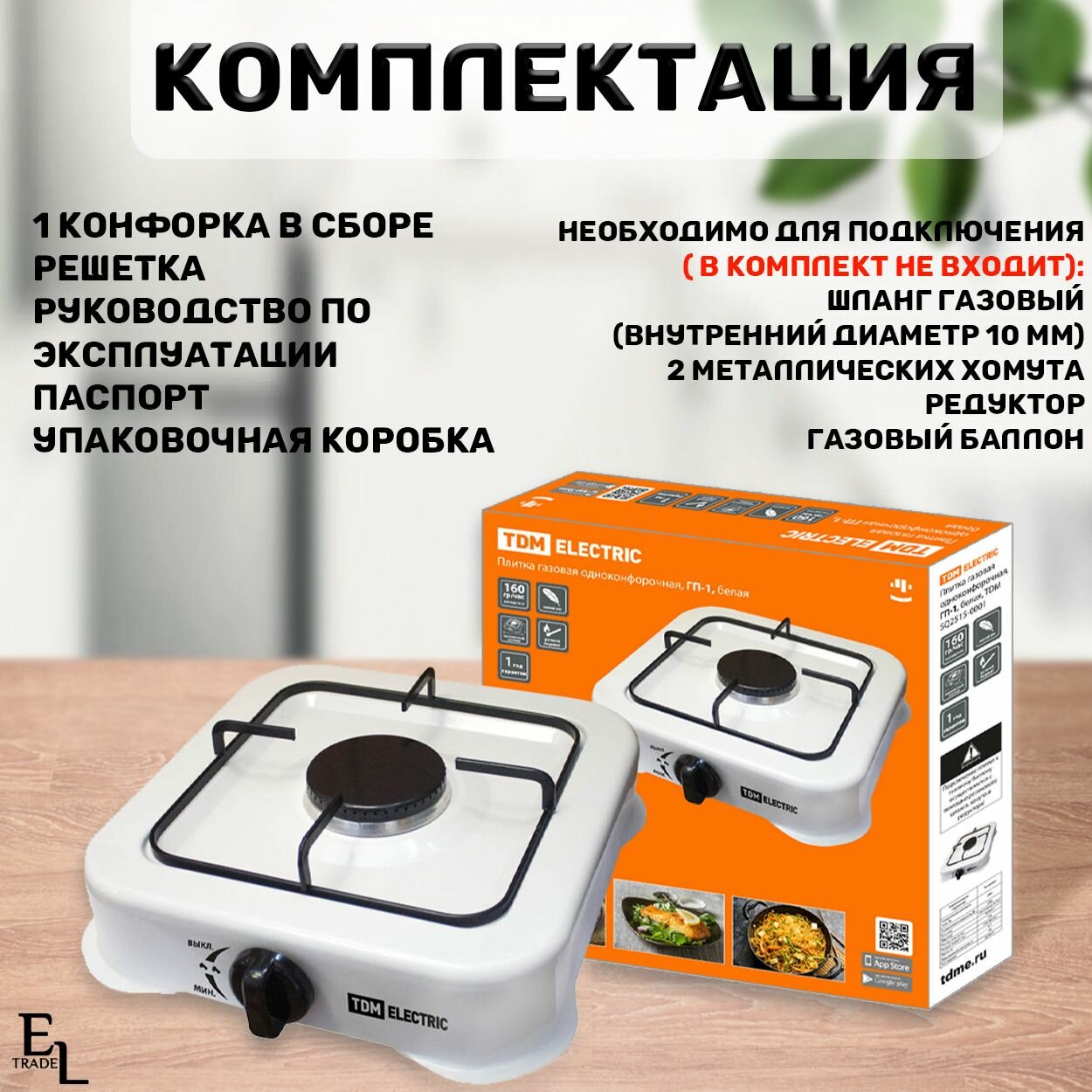 Плитка газовая одноконфорочная , ГП-1, белая, TDM SQ2515-0001 (1 шт.)