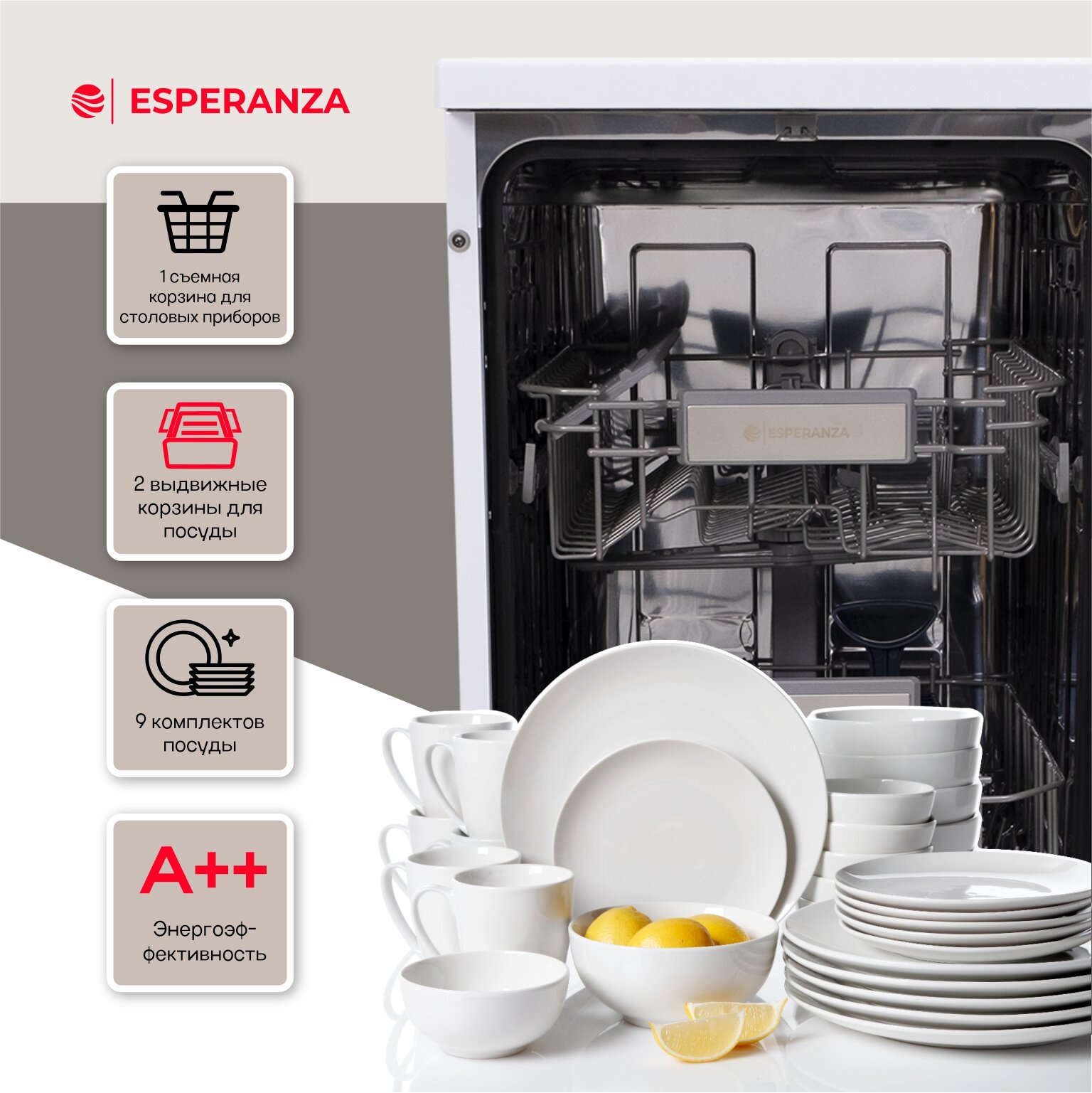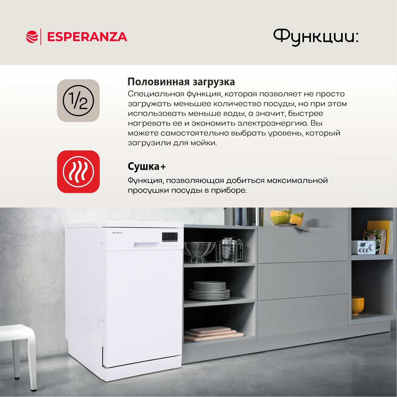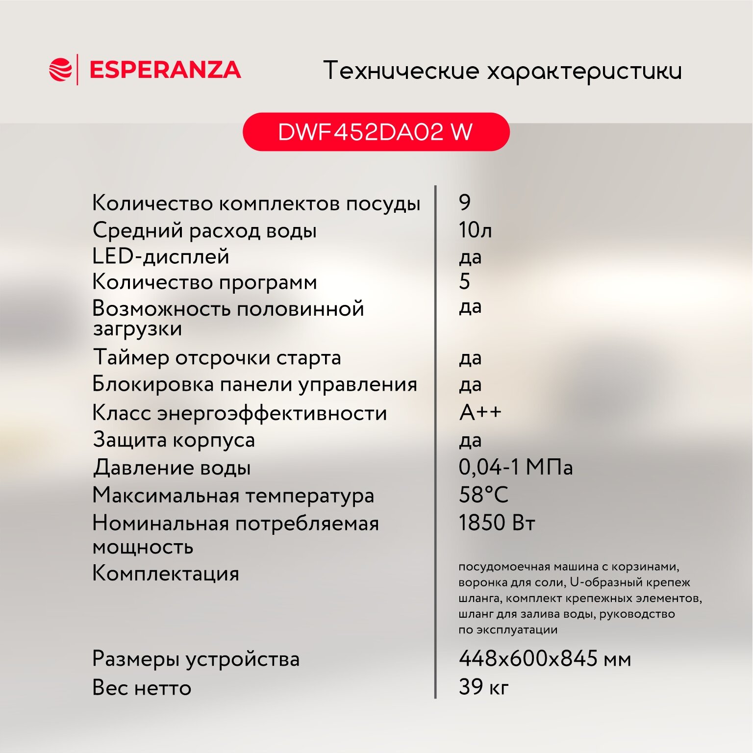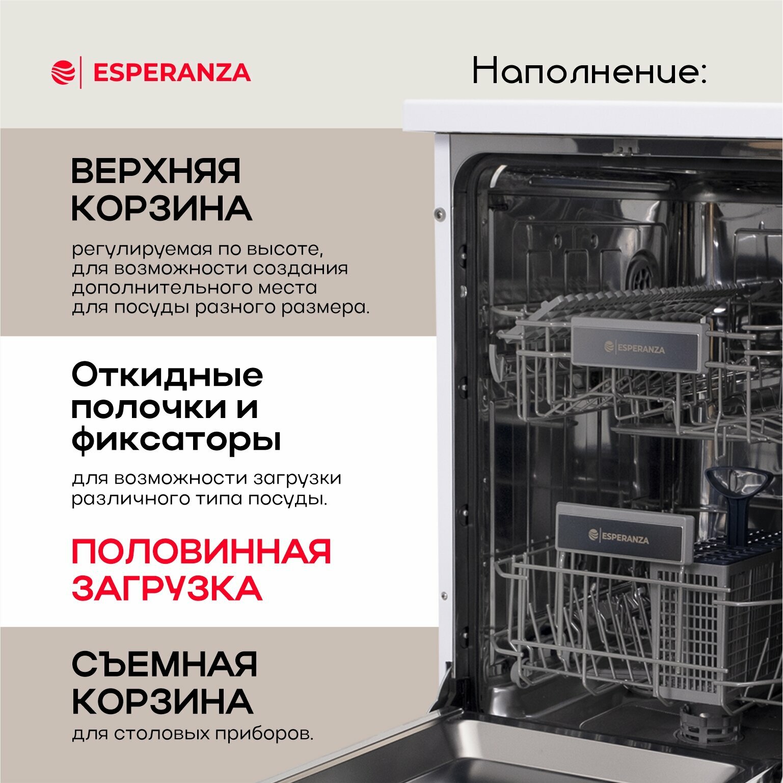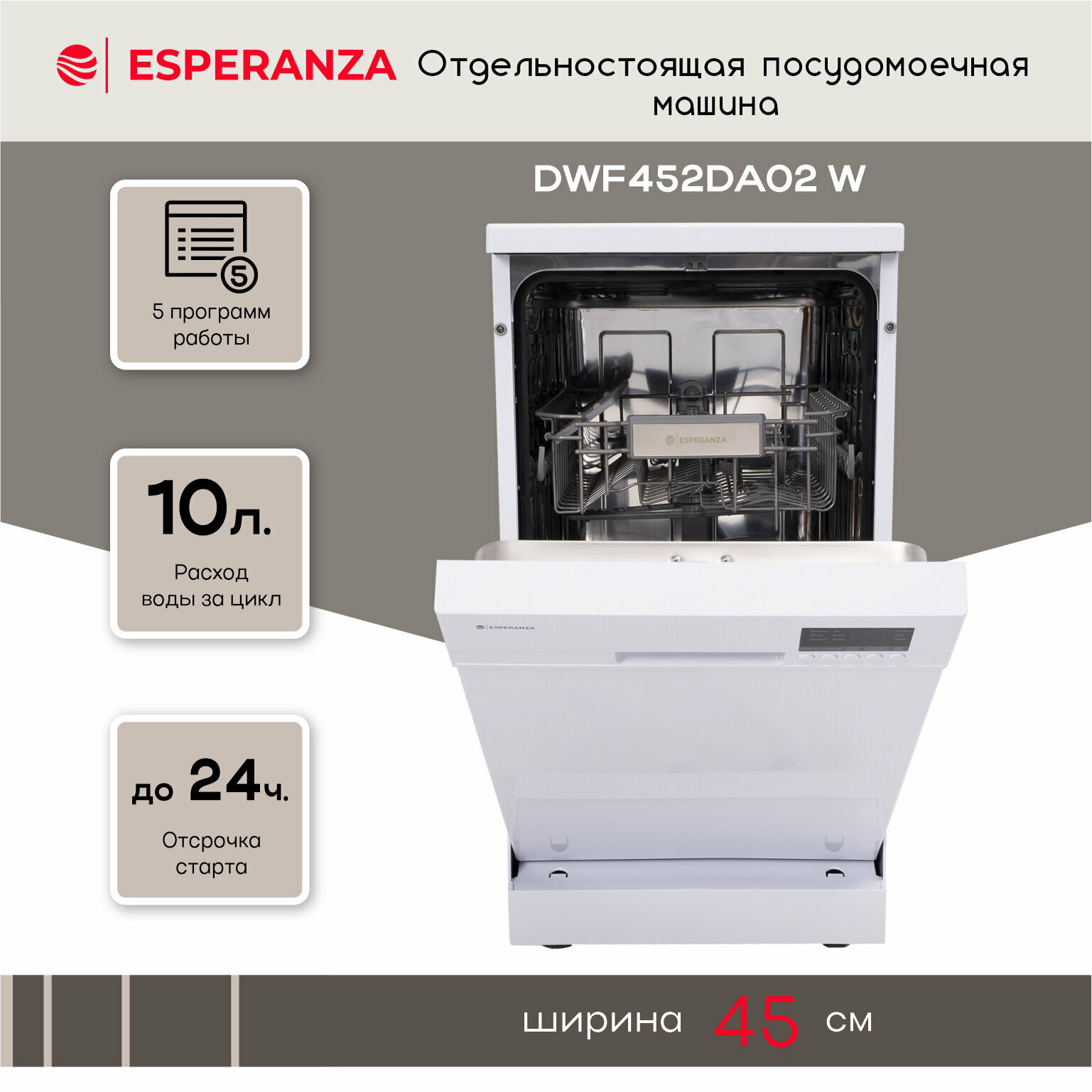 Посудомоечная машина отдельностоящая ESPERANZA DWF452DA02 W интересное: