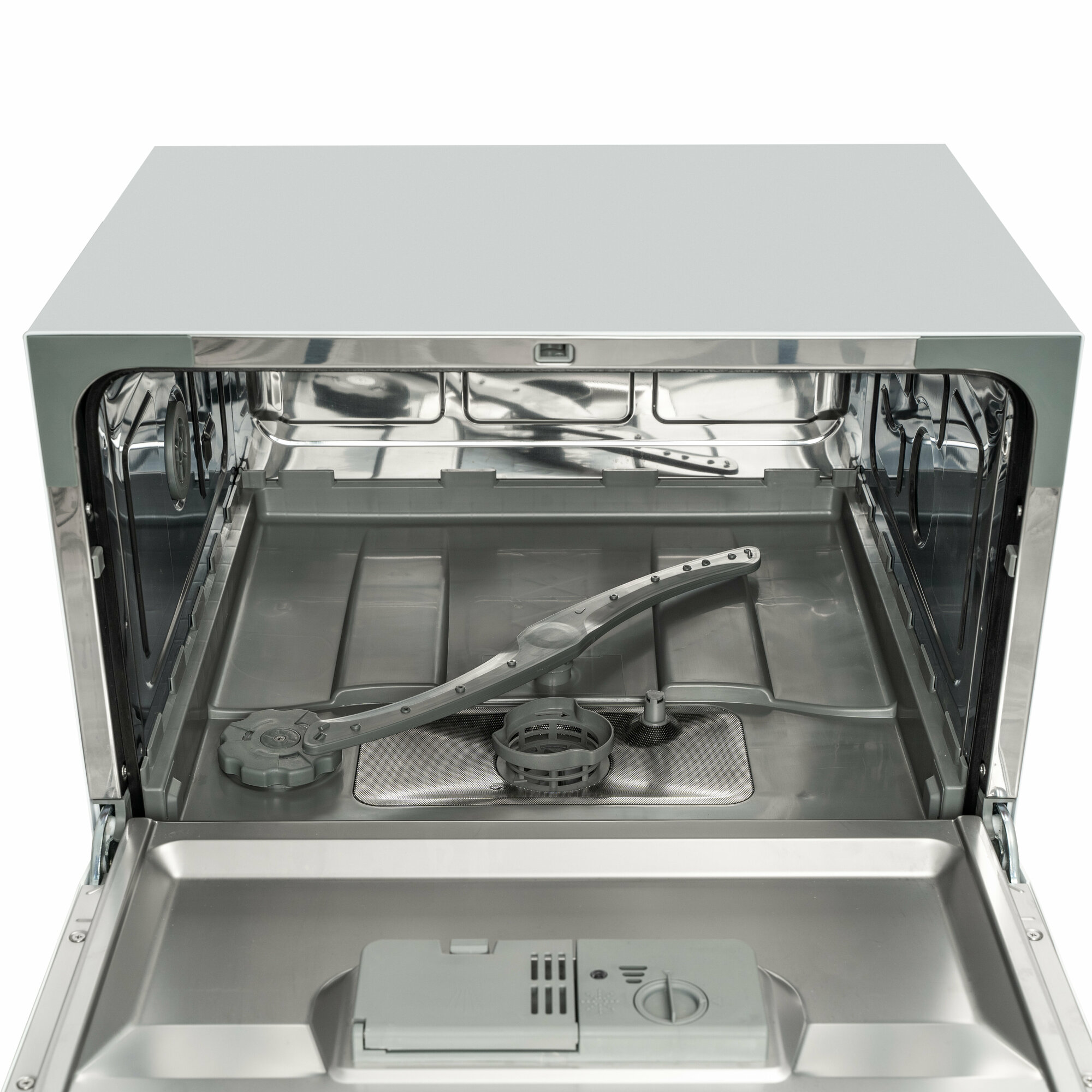 Компактная посудомоечная машина DeLonghi DDW 07T Argento metallico, серебристая, сенсорный дисплей, Bambino Controle, 6 комплектов посуды