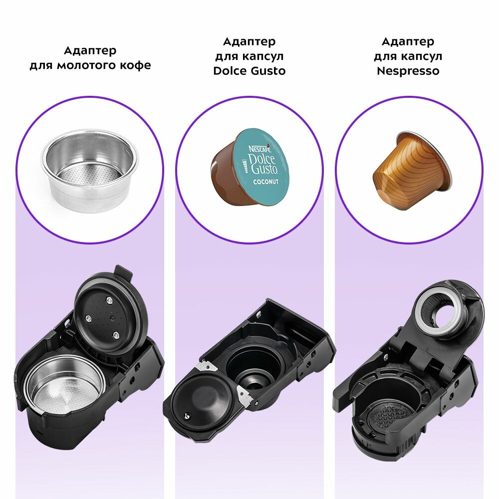 | Тип капсул | Dolce Gusto / Nespresso Original / Nespresso |