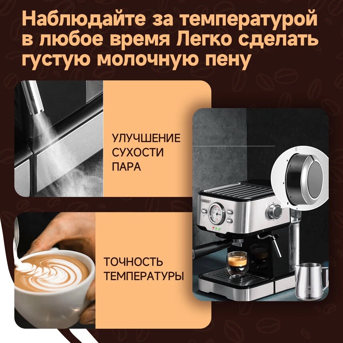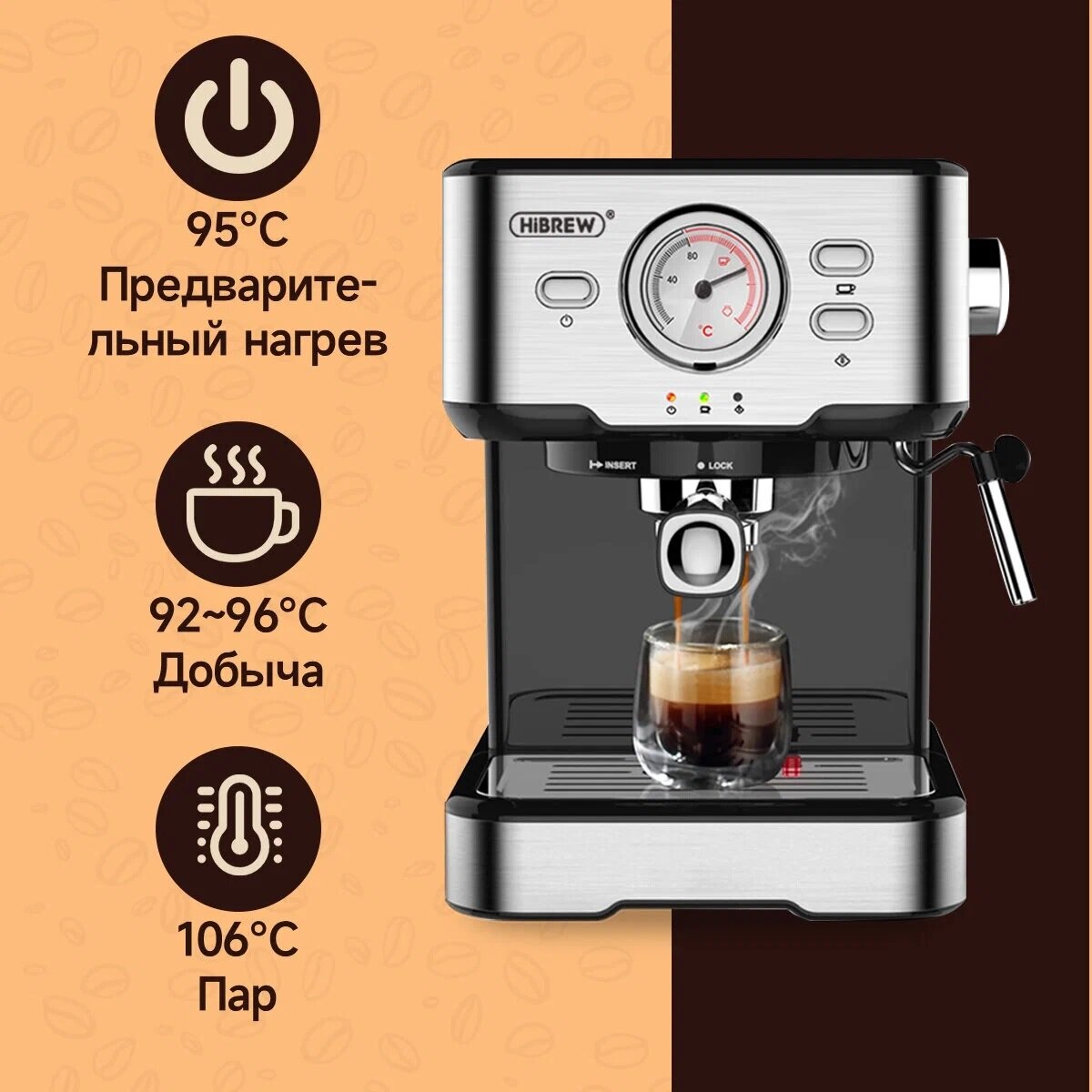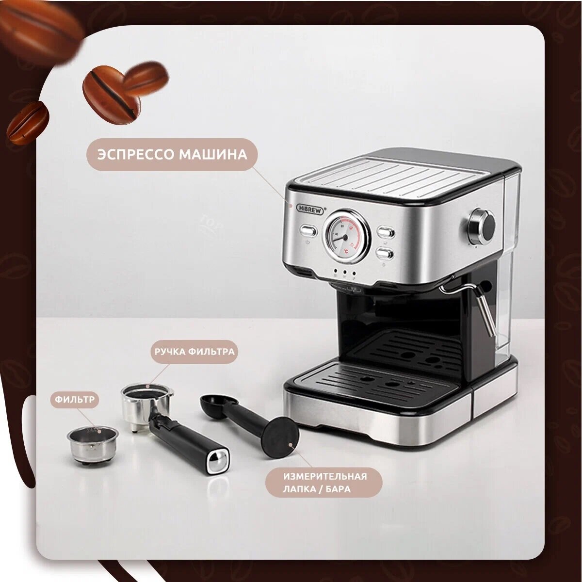Кофемашина Hibrew H5 (CM5403) - серебряный / Встроенный капучинатор/Давление 20 бар/Мощность 1050 Вт/1.5 л ёмкость/ вилка РФ интересное: