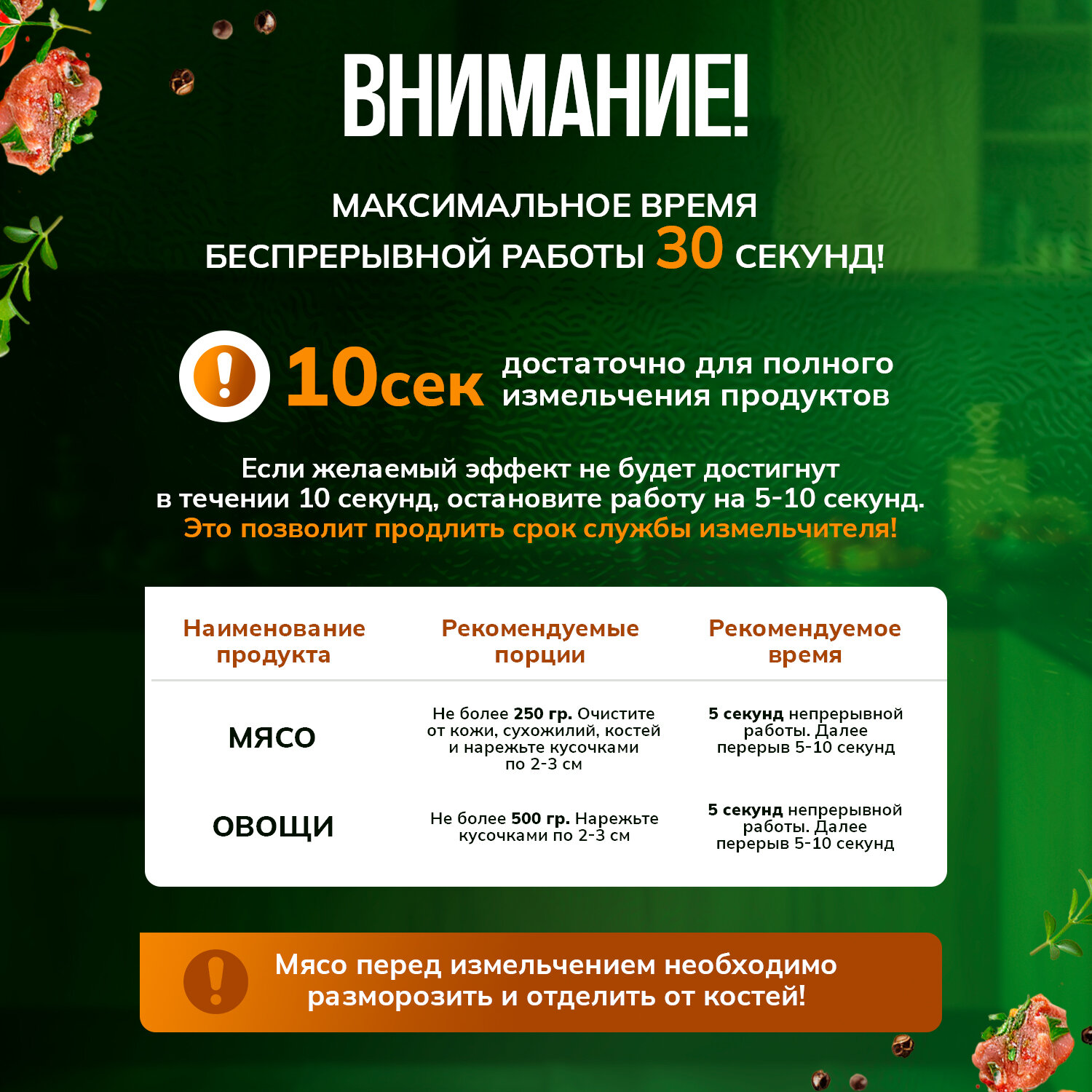 | Насадки | венчик для взбивания, мясорубка, универсальный нож |
