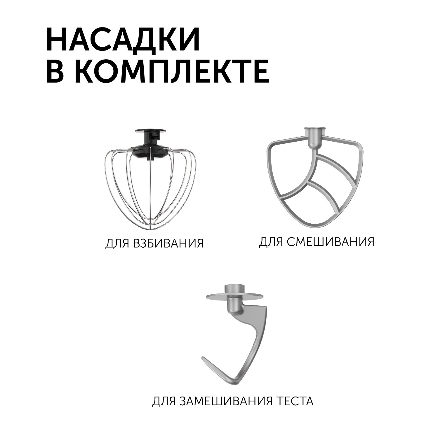 | Насадки | венчик для взбивания / крючки для замешивания теста / лопатка |