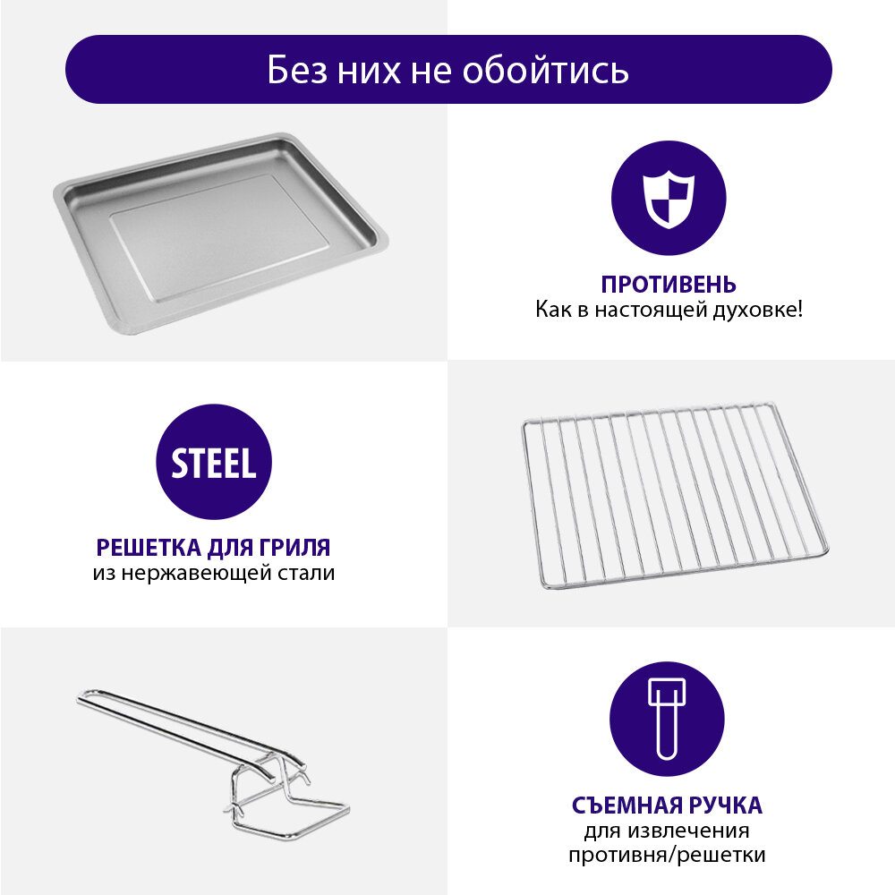 | Комплектация | держатель для противня/решётки / противень / решётка |
