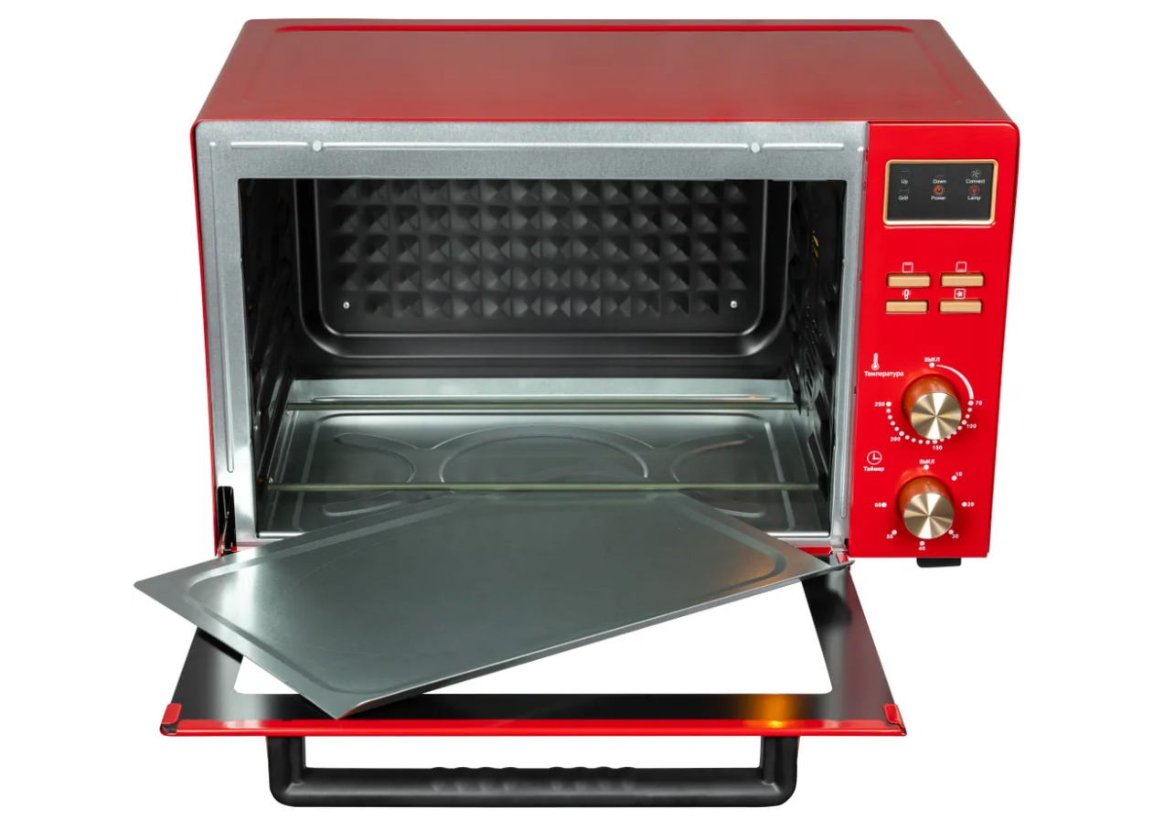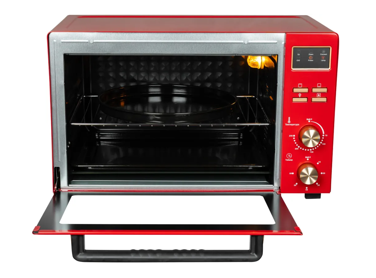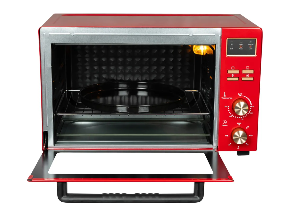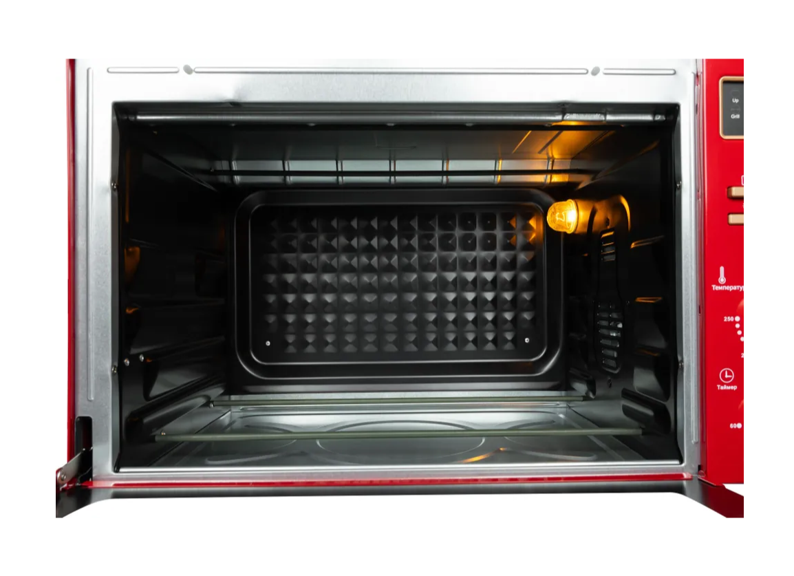 СохранитьМини-печь, 45 л, Конвекция, 7 режимов, Разморозка, Автоотключение по таймеру, 50-250 С, il Monte EO-4512-RED интересное: