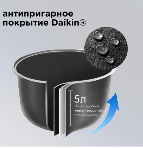 | Программы приготовления | выпечка / жарка / йогурт / молочная каша / плов / приготовление на пару / суп / тушение |