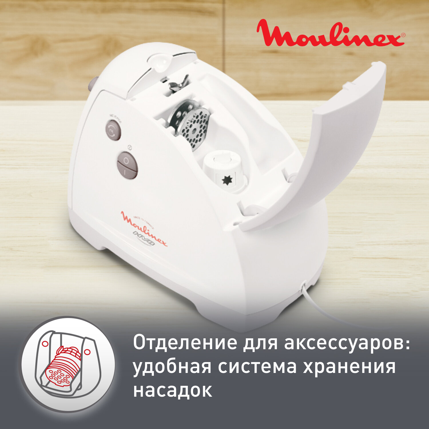 Купить Мясорубка электрическая Moulinex HV8 ME626132 с реверсом, 2000 Вт, 2.6 кг/мин, с насадками для нарезки, шинковки и колбас, Франция, белый