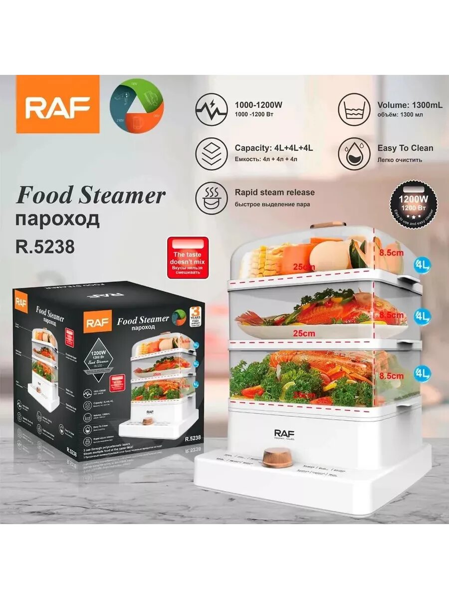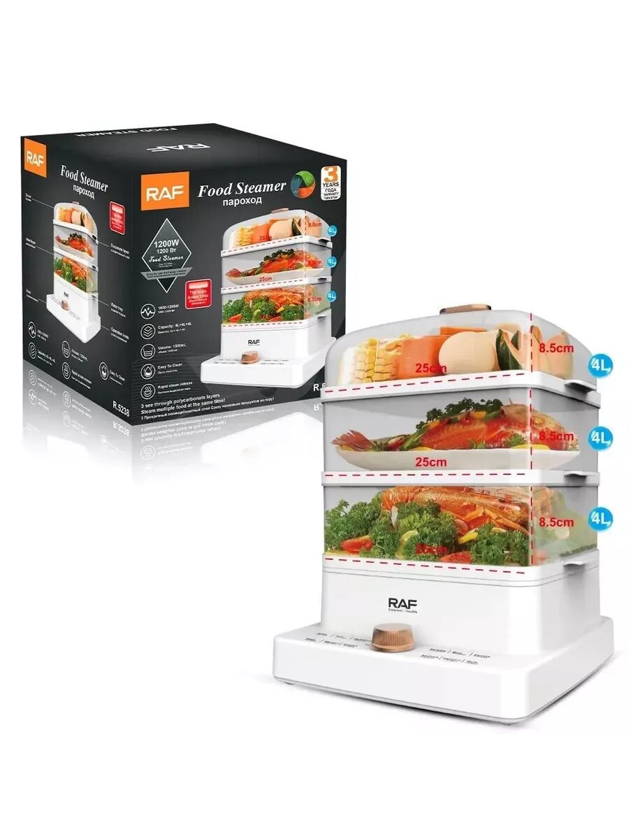 Пароварка электрическая белая 1200W интересное: