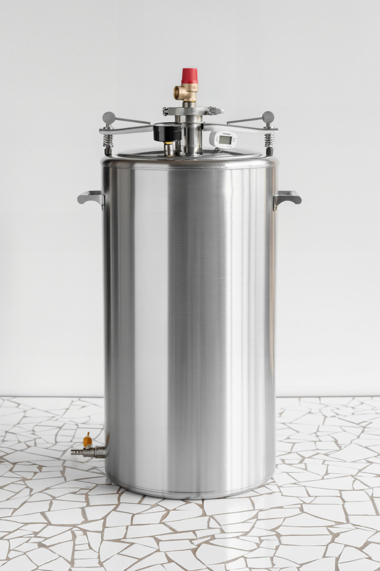 | Подробная комплектация | 1. Бак 42 литра из пищевой нержавеющей стали - 1 шт.; 2. Кассеты - 6 шт.; 3. Крышка Power inside - 1 шт.; 4. Прокладка для крышки - 1 шт.; 5. Перекладина для фиксации крышки - 1шт.; 6. Вентили для перекладины крышки (ручные болты) - 2 шт.; 7. Клапан аварийного сброса давления на 3 Бар. - 1 шт.; 8. Кран сливной - 1 шт.; 9. Хомут для клампового соединения - 1 шт.; 10. Термометр - 1 шт.; 11. Манометр - 1 шт.; 12. Инструкция - 1 шт.; 13. Гарантийный талон - 1 шт. |