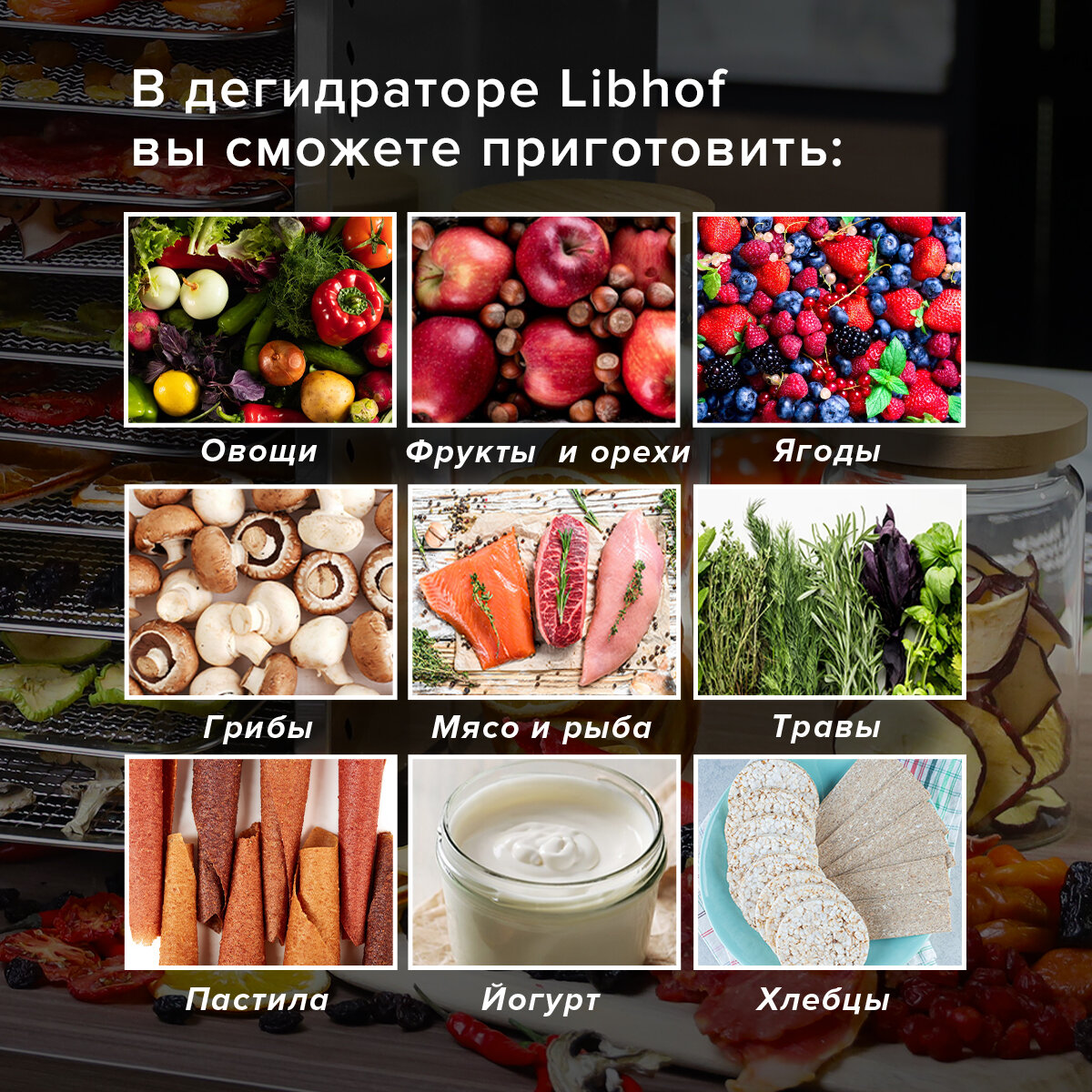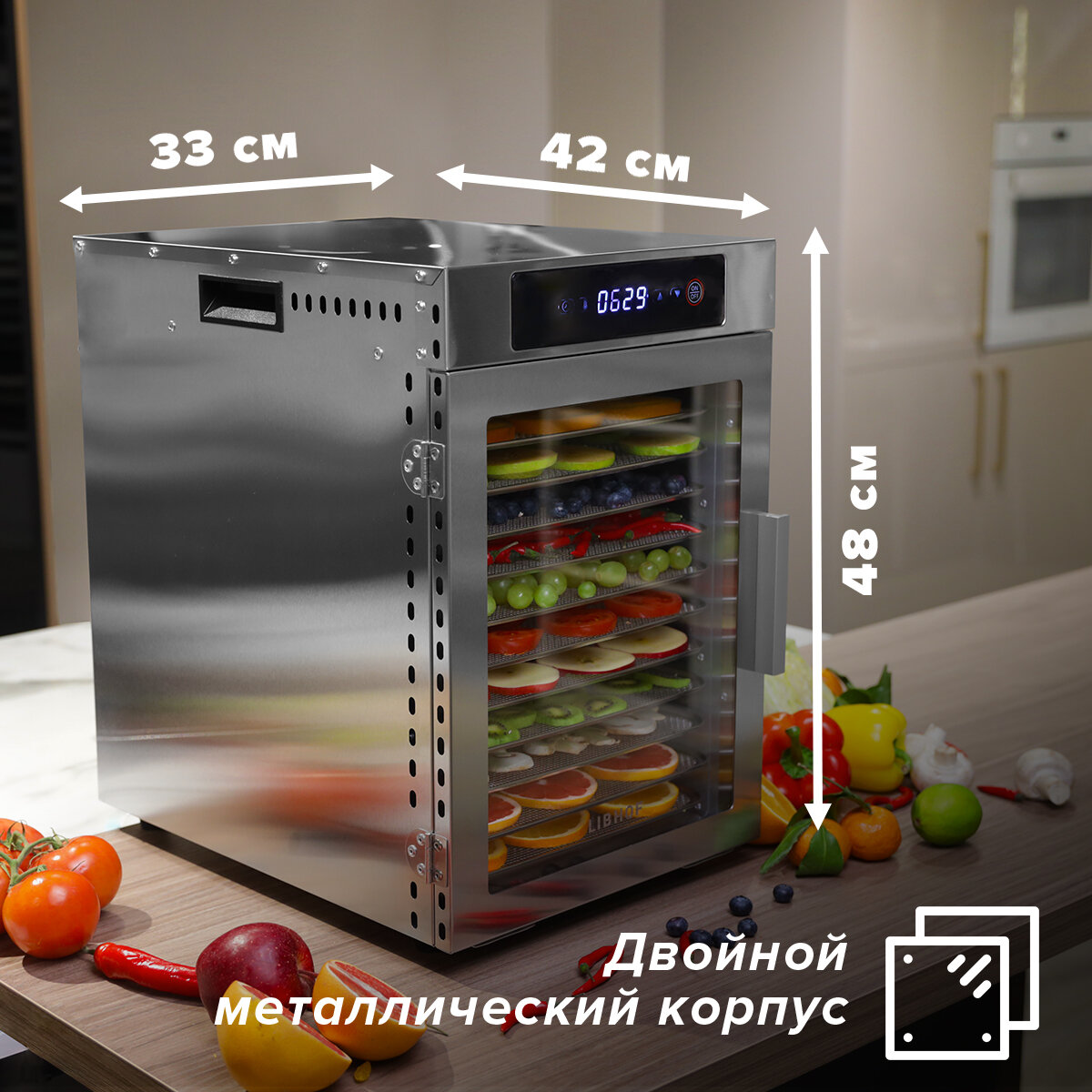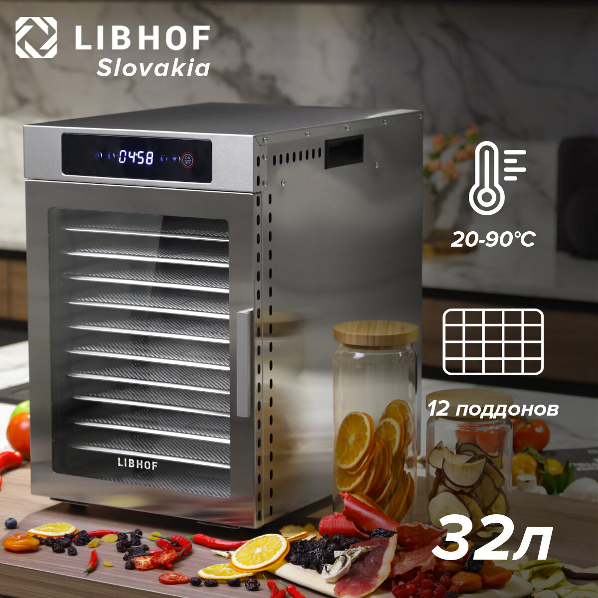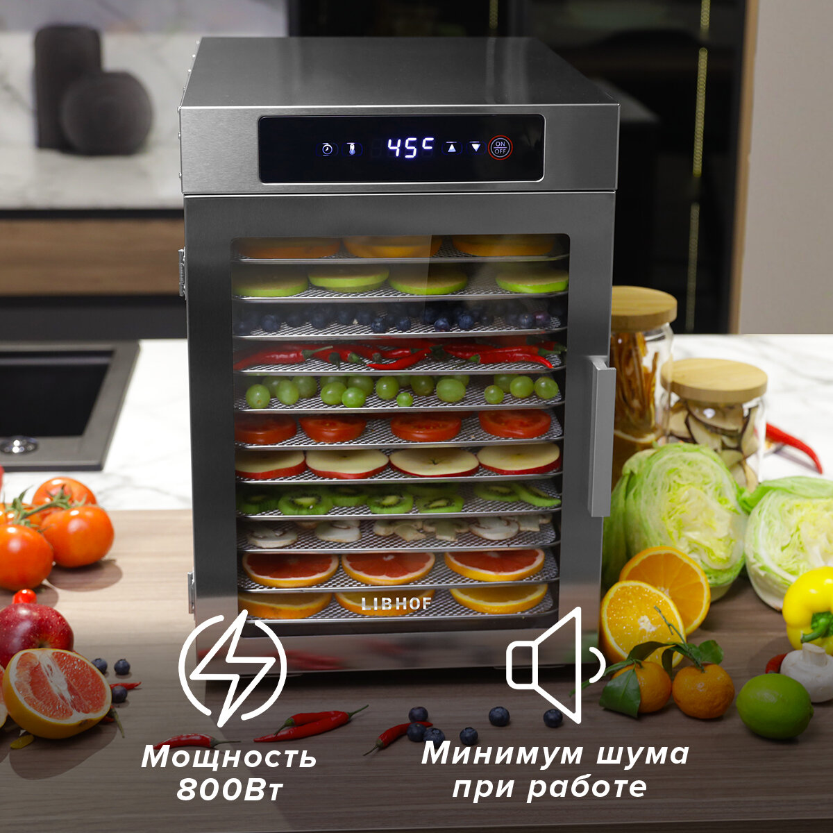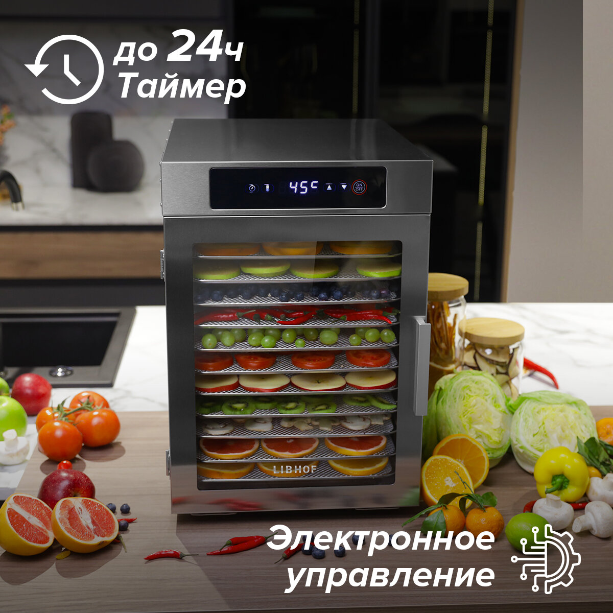 Сушилка для овощей и фруктов Libhof FDN-12 / 12 поддонов интересное: