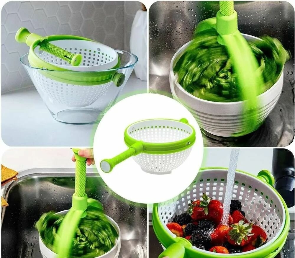 Сушилка механическая с ручкой spinning strainning colander / для зелени, овощей, фруктов и ягод / центрифуга для салата пластиковая интересное:
