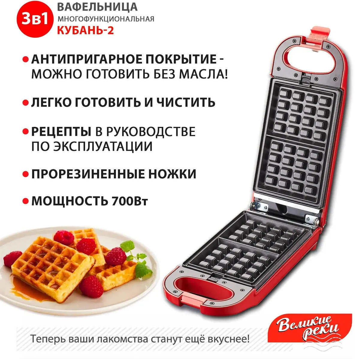 Вафельница Великие Реки Кубань-2 красная интересное: