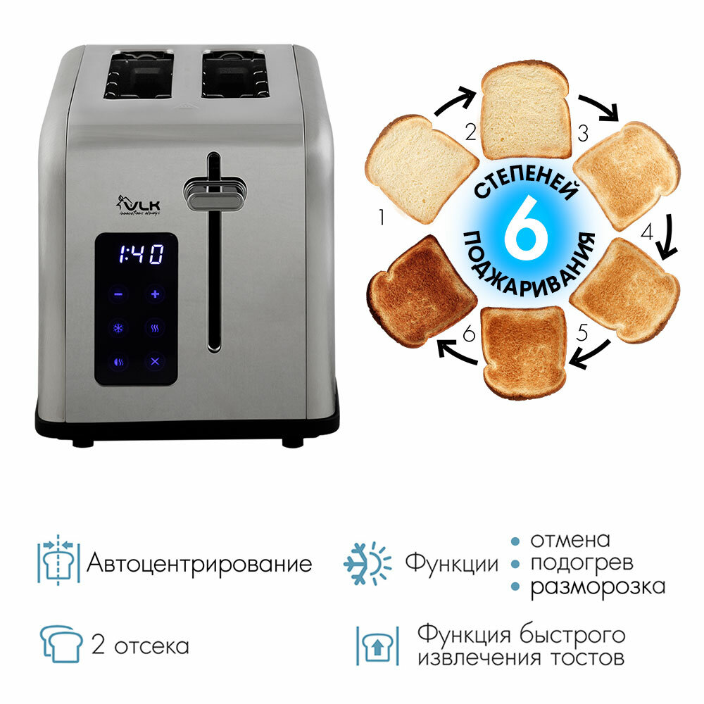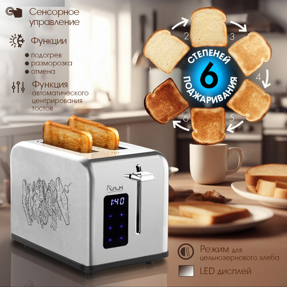 Электрический тостер VLK Palermo-103 / 6 степеней поджаривания / Автоматический выброс тостов интересное: