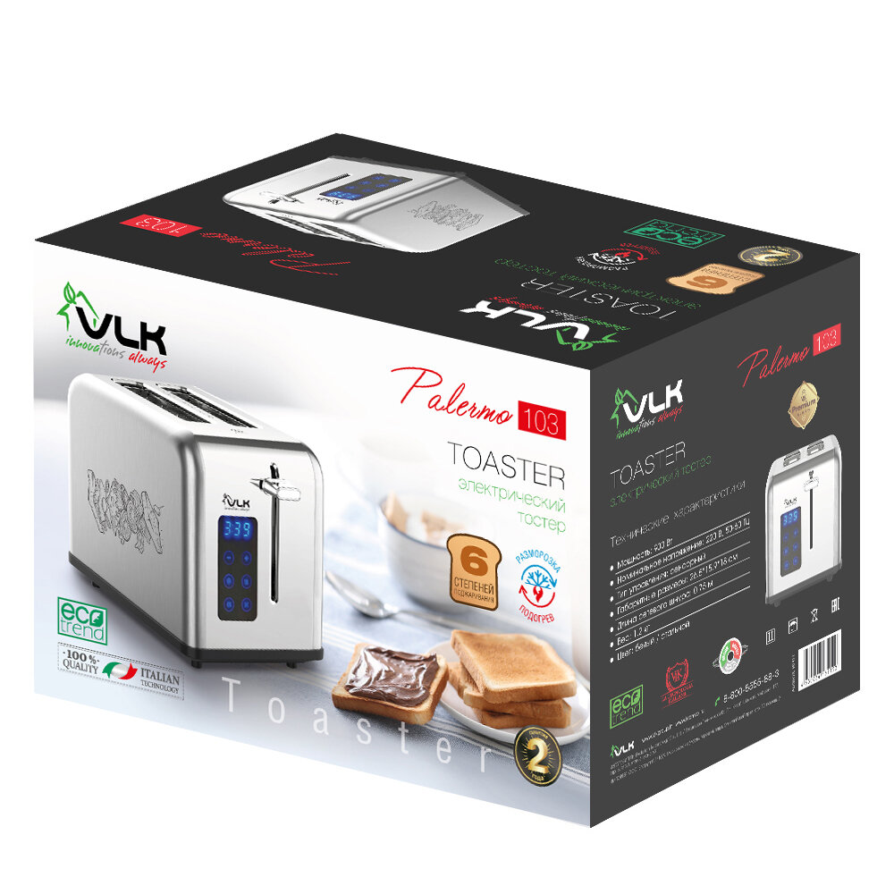 Купить Электрический тостер VLK Palermo-103 / 6 степеней поджаривания / Автоматический выброс тостов