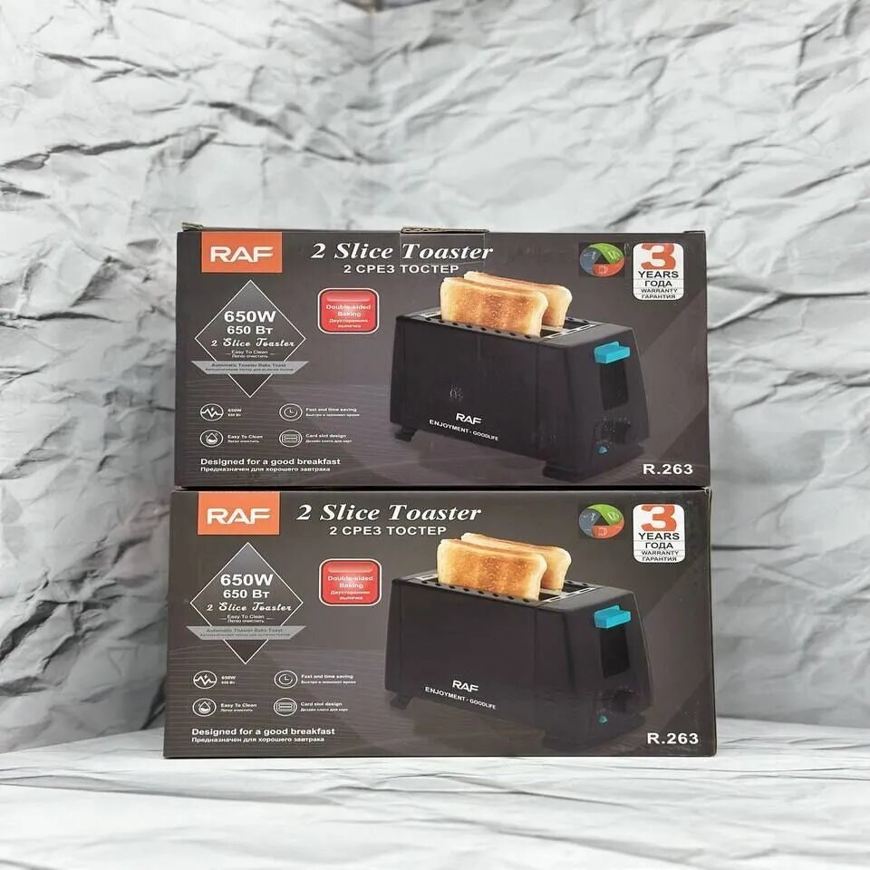 Тостер RAF на 2 тоста, черный, пластик/металл, 100 Ватт, 2 отделения, 60 см шнур интересное: