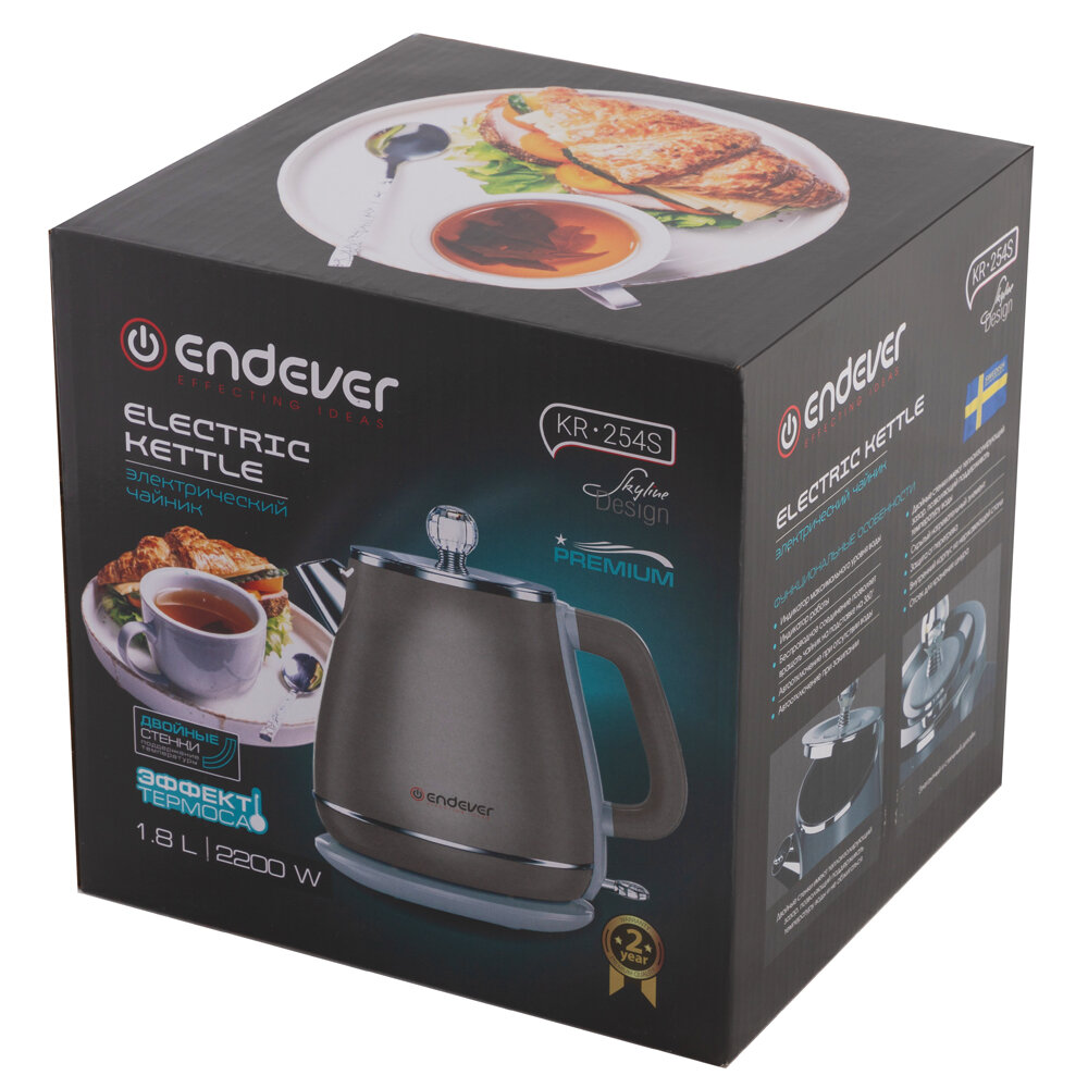 Чайник электрический с эффектом термоса Endever KR-253S/254S / 1,8л / 2200 Вт / двойные стенки