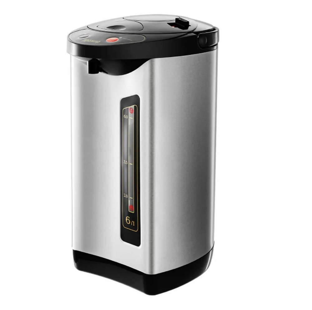 Чайник термос электрический, объем 6 л, мощность 900 Вт, цвет серебристый, черный