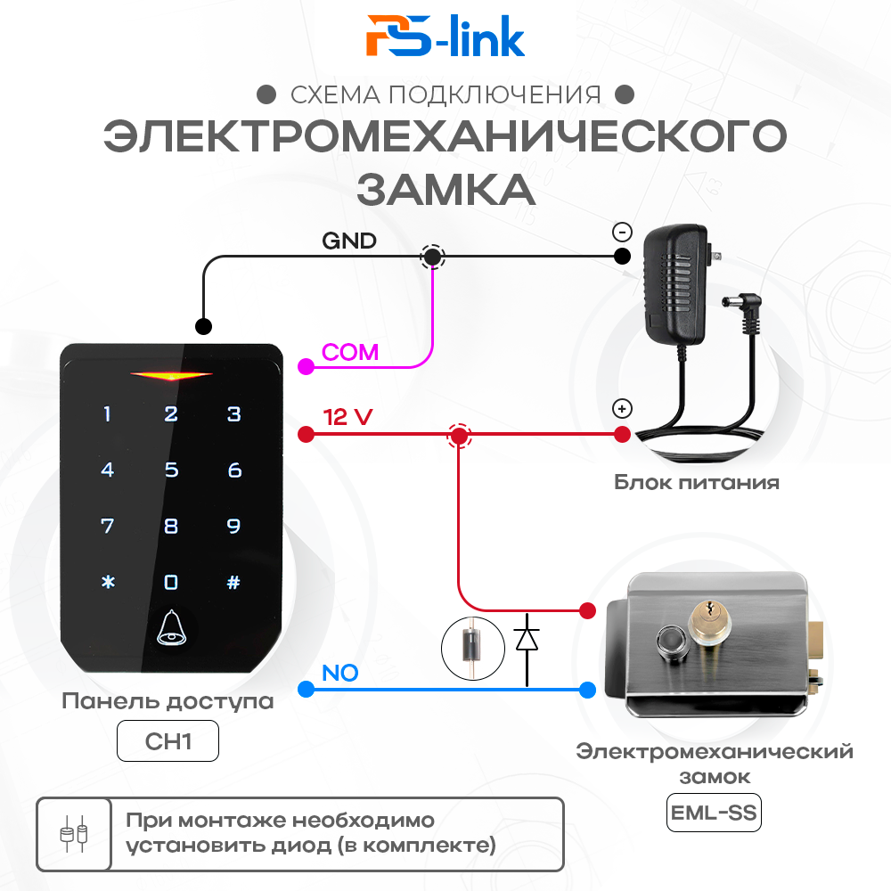 Комплект СКУД на одну дверь PS-link CH1-SSM WIFI с электрическим замком интересное: