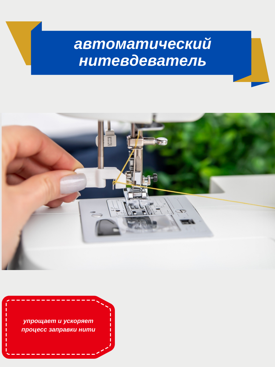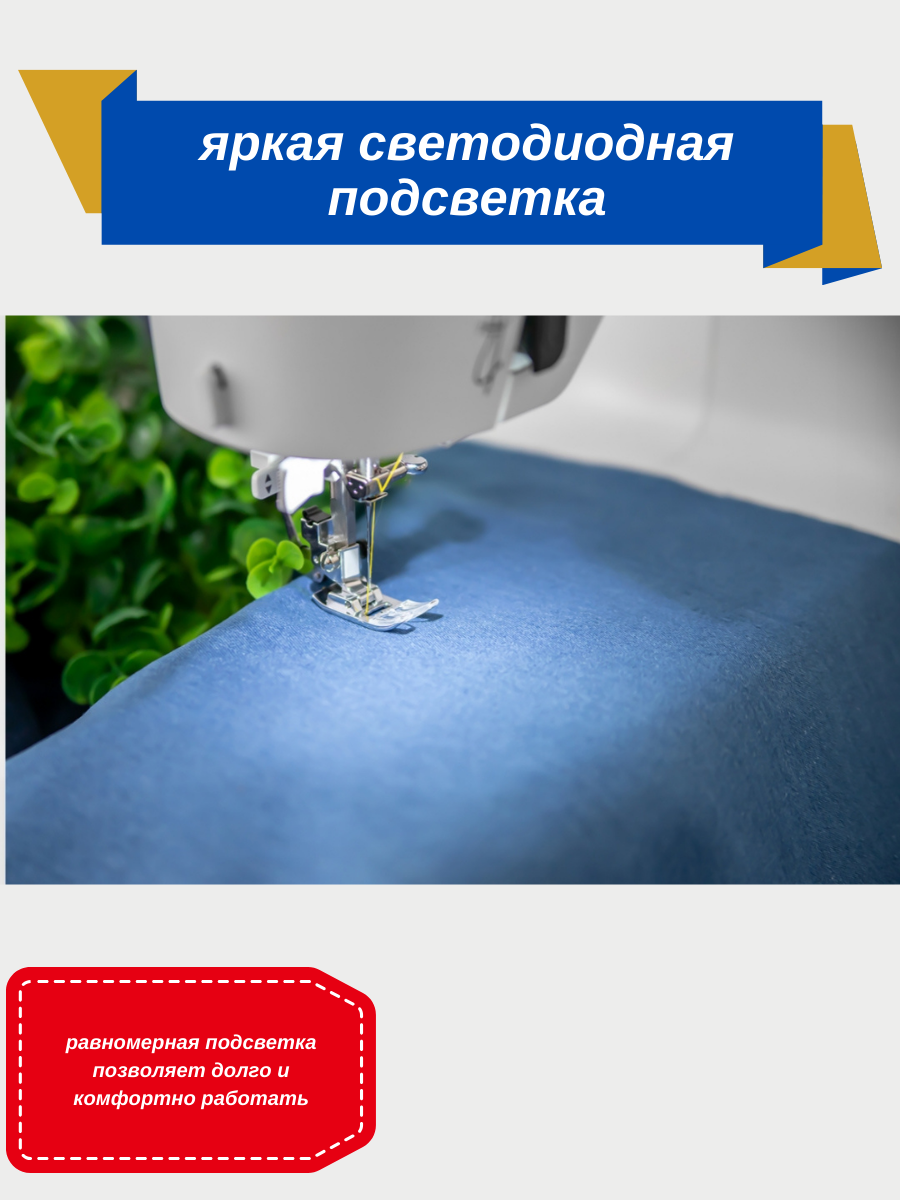 | Особенности конструкции | нитевдеватель, отсек для аксессуаров, подсветка, рукавная платформа |