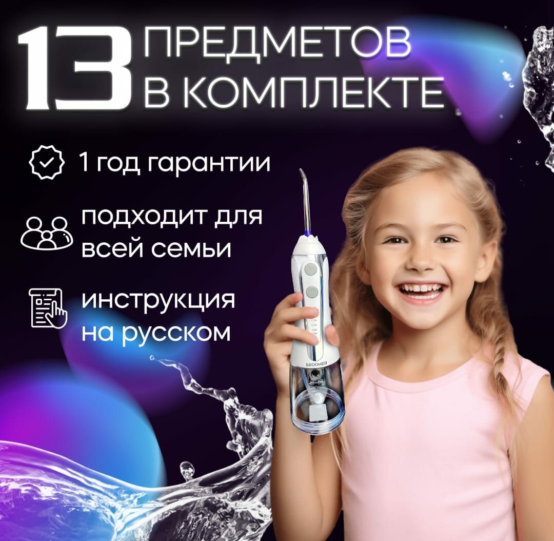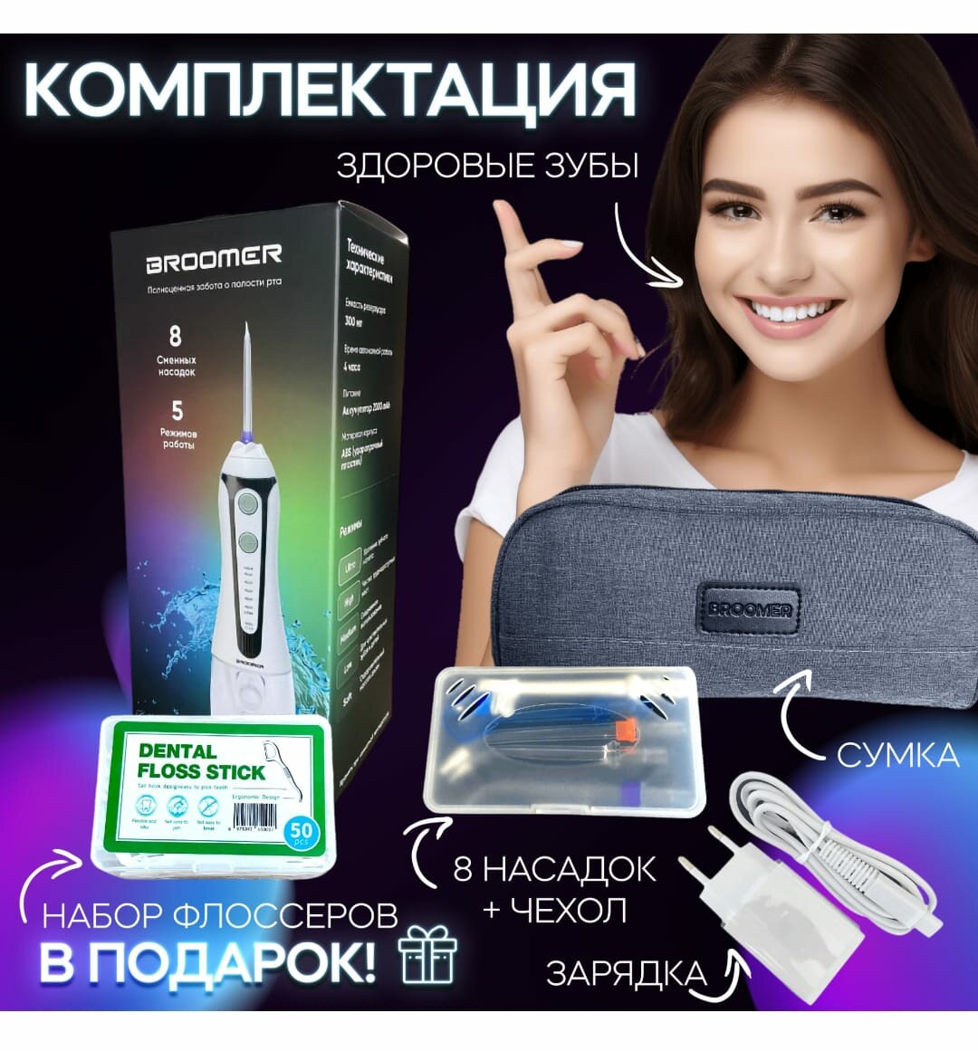 Ирригатор для полости рта , портативный , Broomer , 8 насадок , для чистки зубов , брекетов , имплантов , ортодонтический интересное: